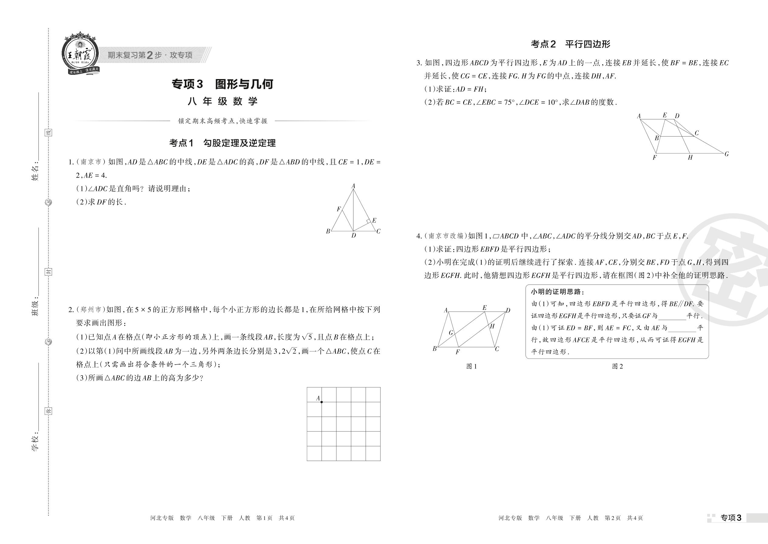 王朝霞期末专项卷——图形与几何八年级下册数学(人教版)_R220321160022692【3】