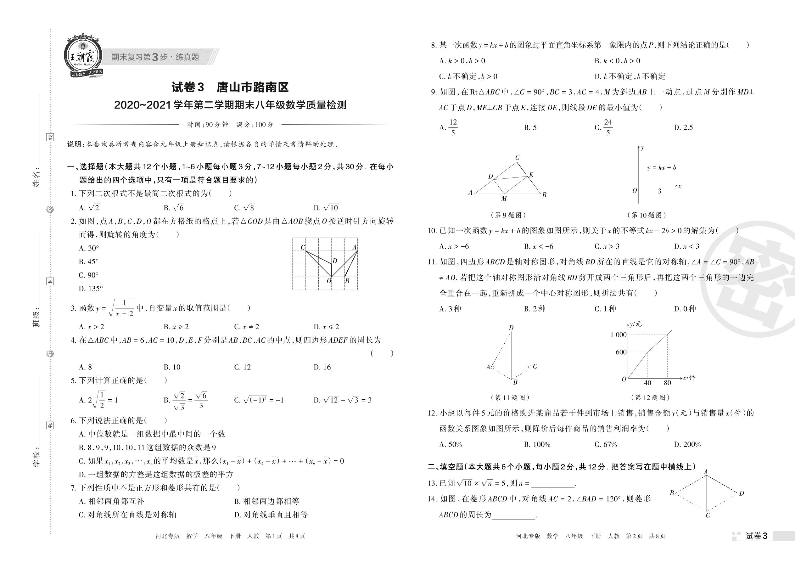 唐山市路南区2020~2021学年第二学期期末八年级数学质量检测(人教版)【3】