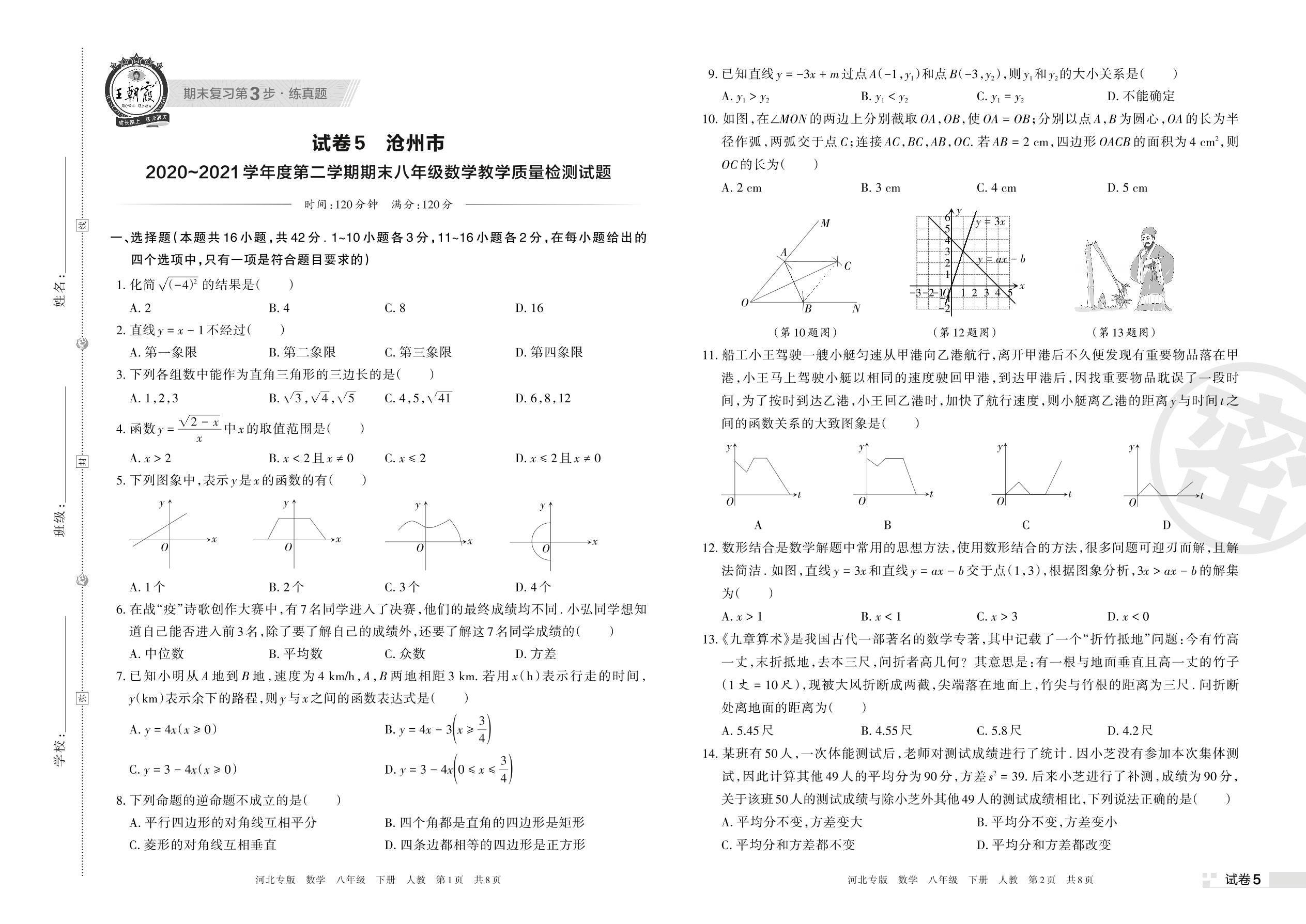 沧州市2020~2021学年度第二学期期末八年级数学教学质量检测试题(人教版)【5】