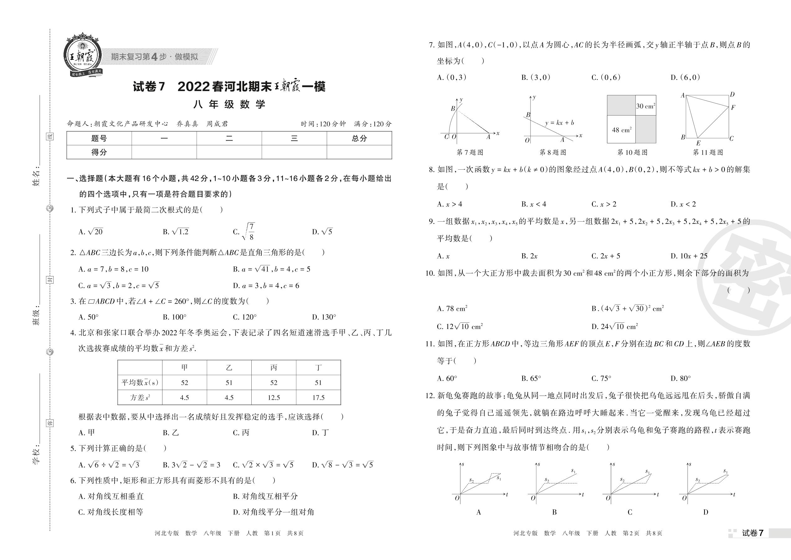 王朝霞期末模拟卷八年级下册数学(人教版)_R220321160023638【7】