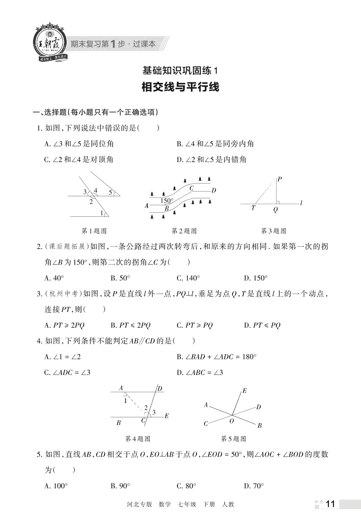 王朝霞期末过课本——基础知识巩固练1 相交线与平行线七年级下册数学(人教版)_R220321162448762