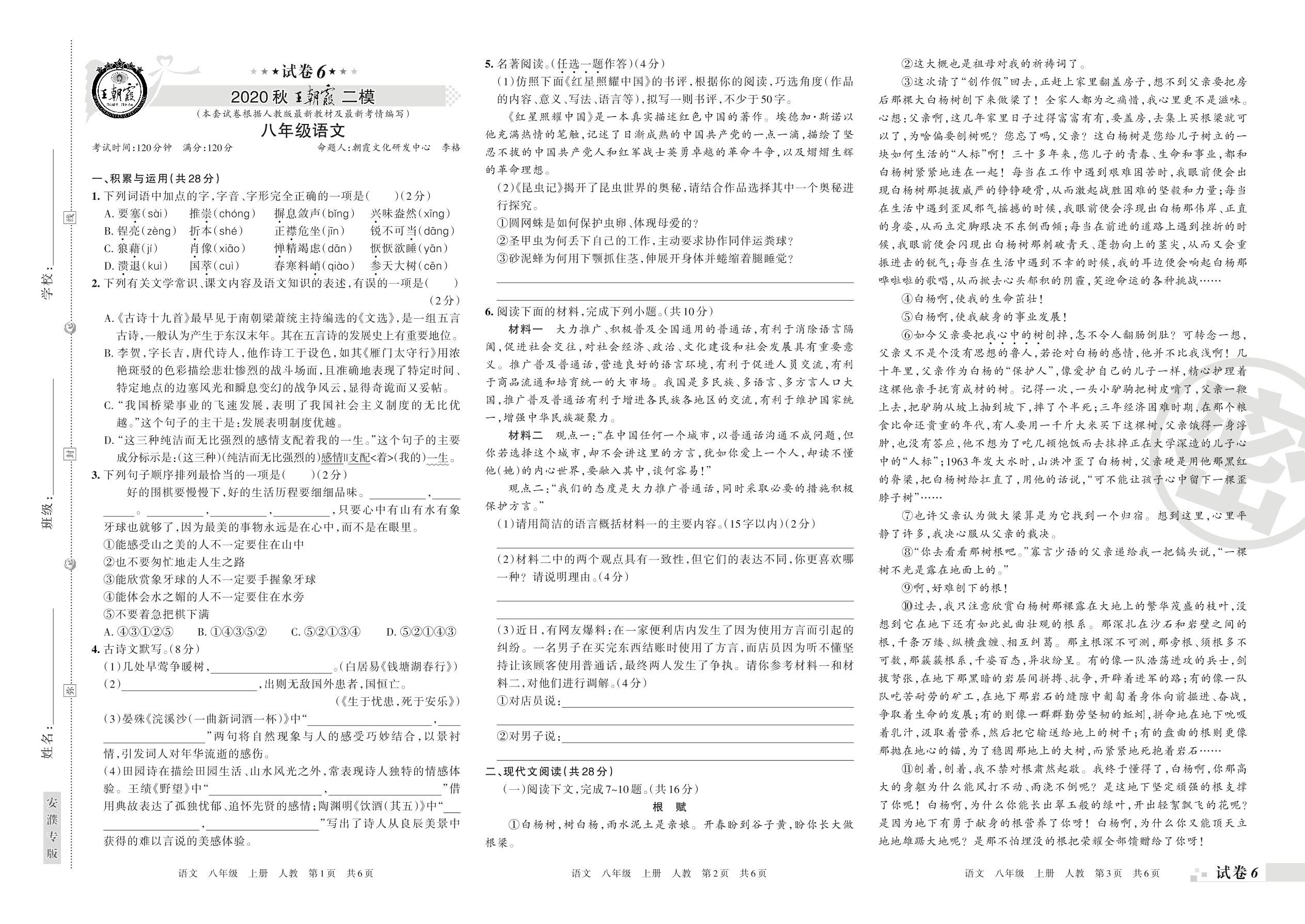 王朝霞期末模拟卷八年级上册语文(人教版)_R21080211428【6】