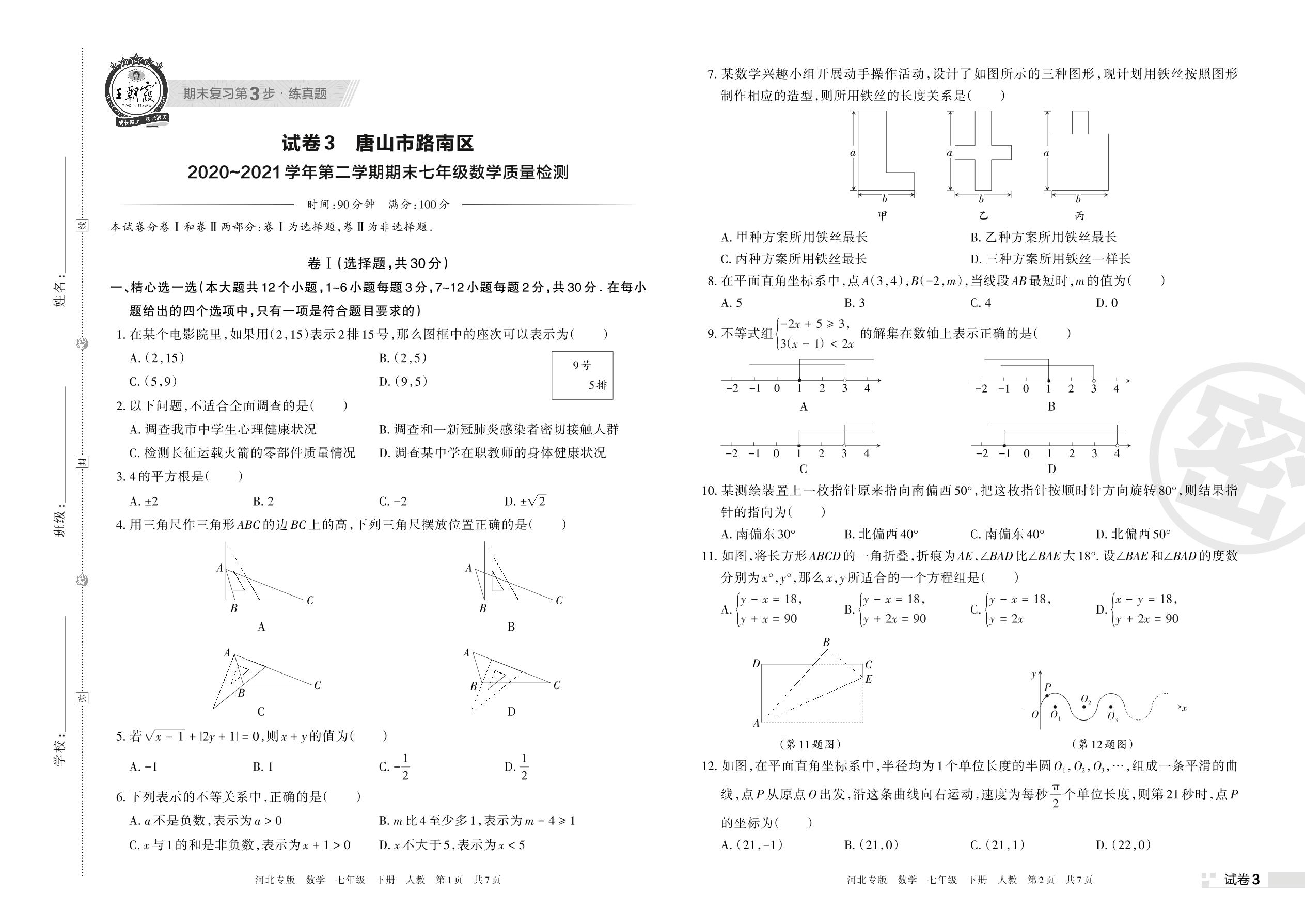 唐山市路南区2020~2021学年第二学期期末七年级数学质量检测(人教版)【3】