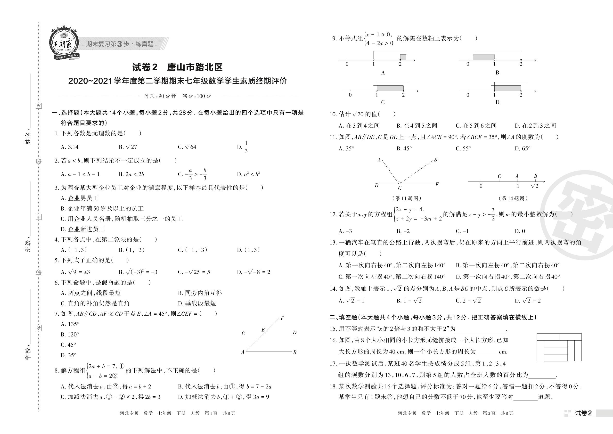 唐山市路北区2020~2021学年度第二学期期末七年级数学学生素质终期评价(人教版)【2】