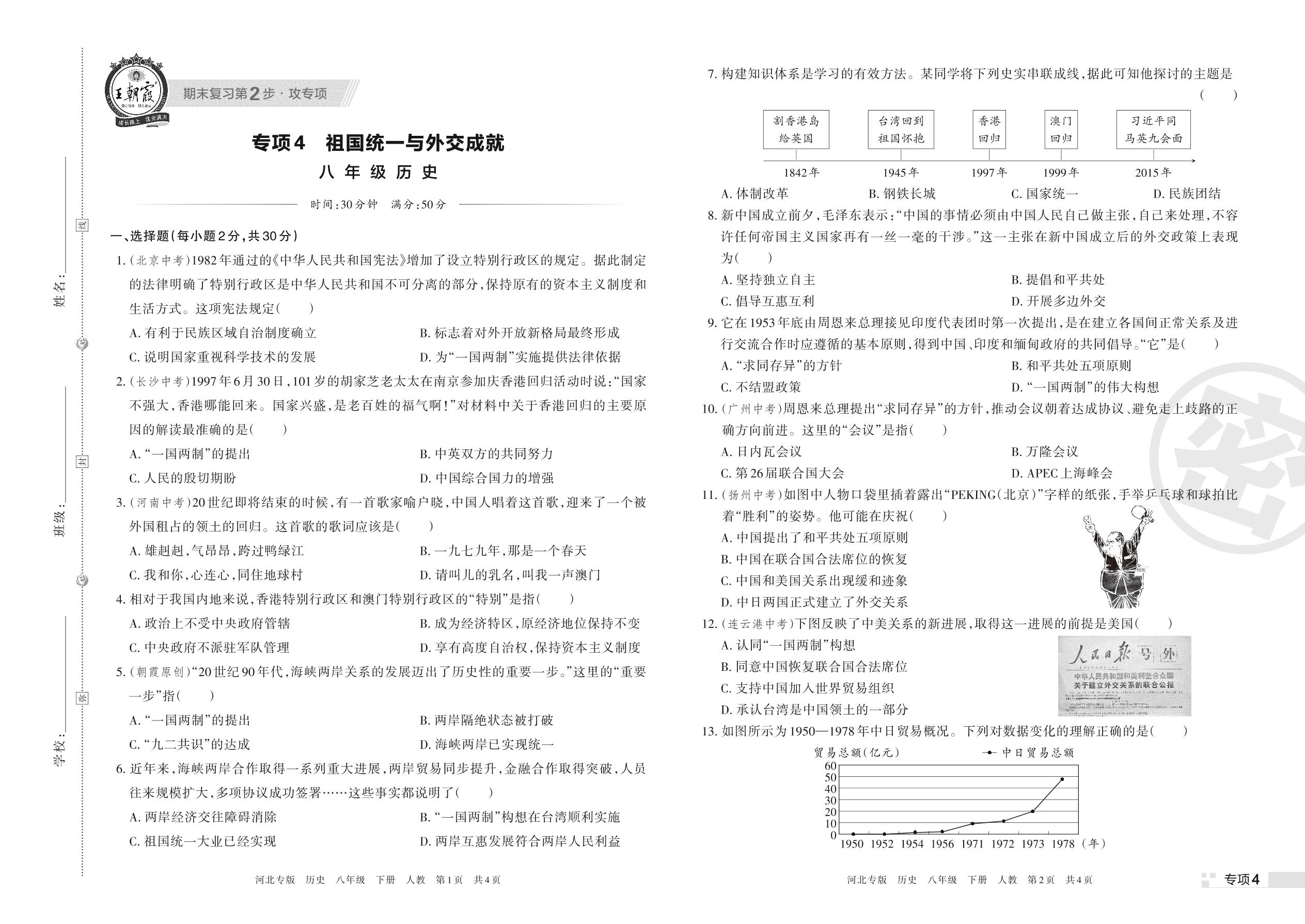 王朝霞期末专项卷——祖国统一与外交成就八年级下册历史(人教版)【4】