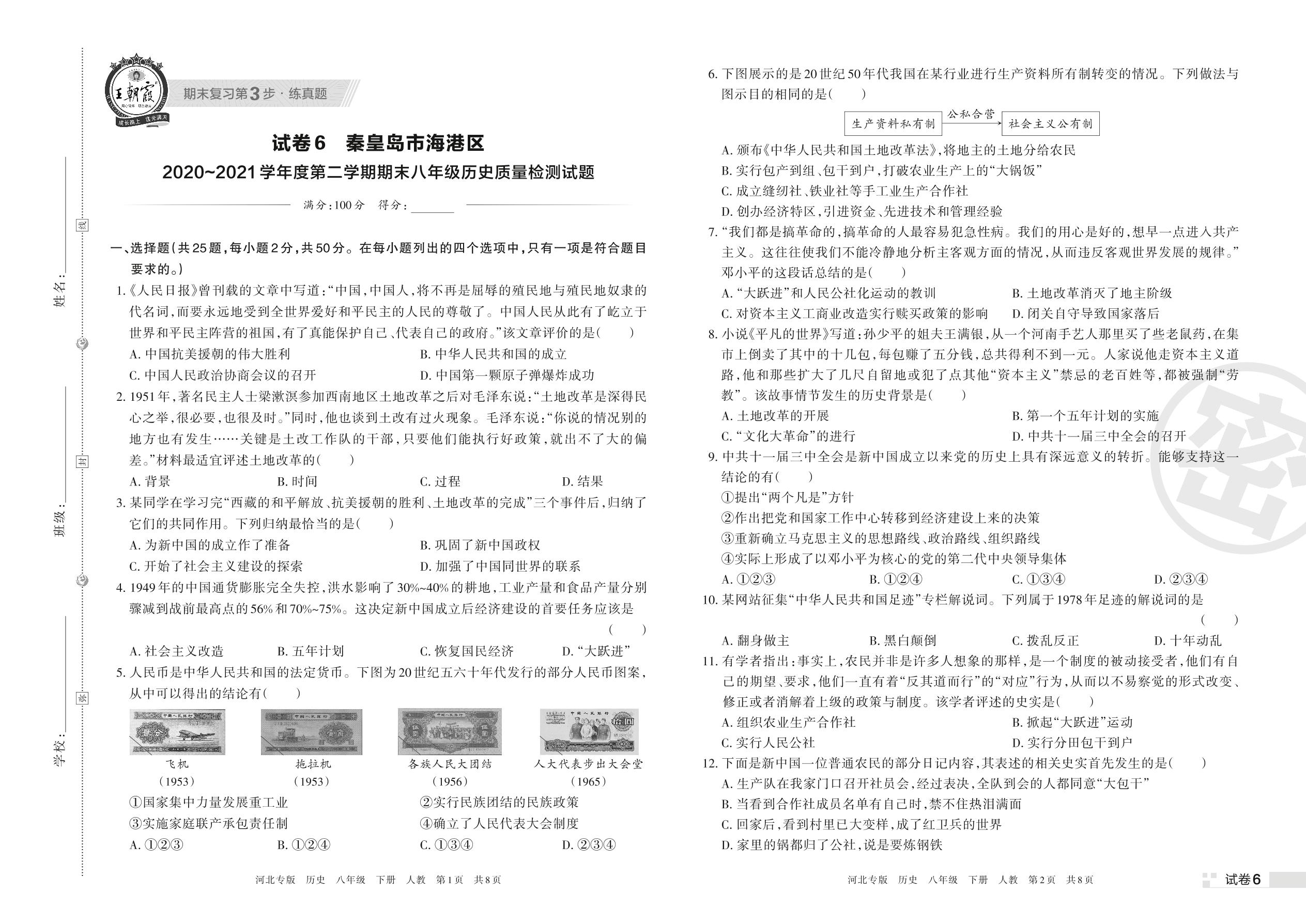 秦皇岛市海港区2020~2021学年度第二学期期末八年级历史质量检测试题(人教版)【6】