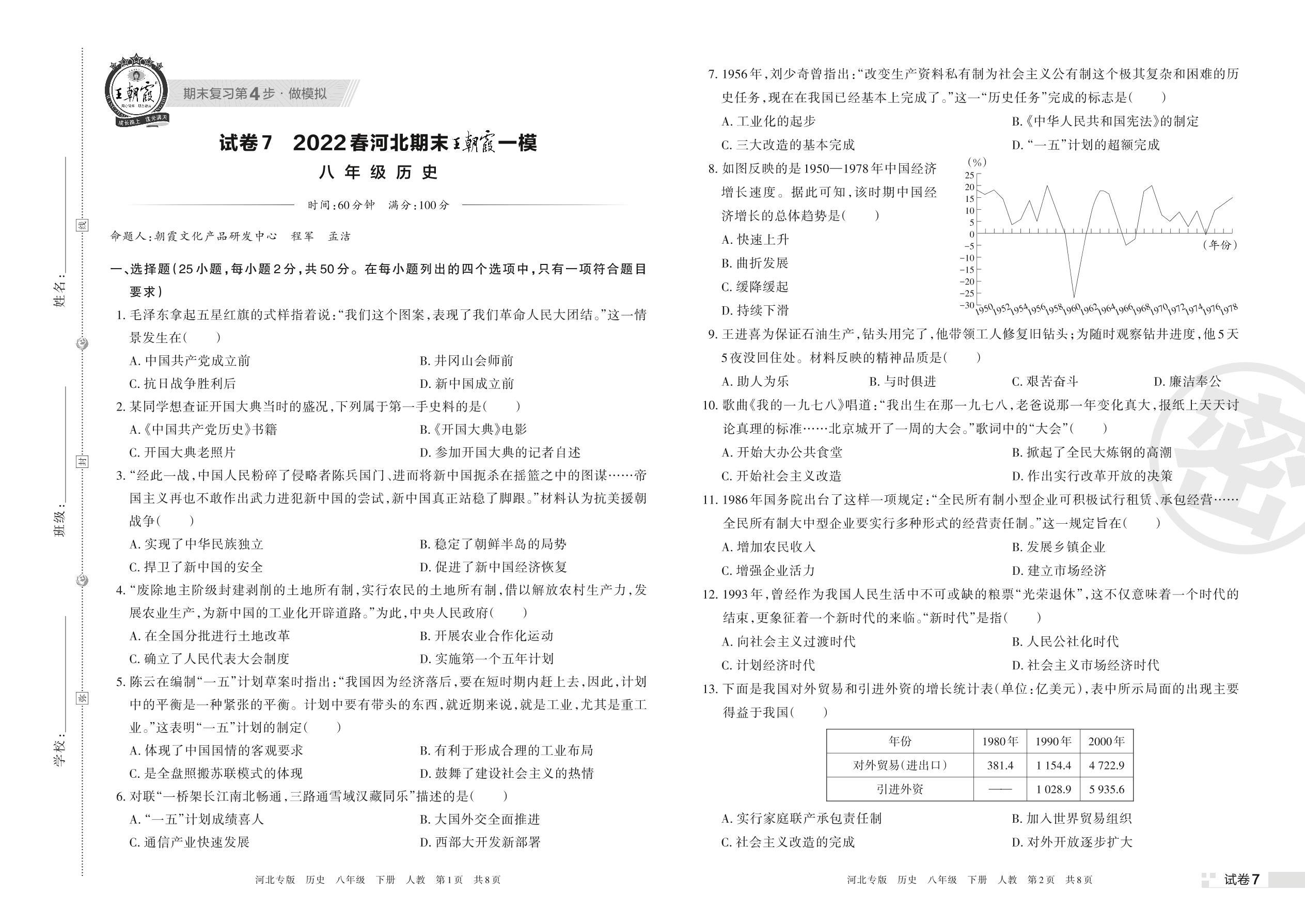 王朝霞期末模拟卷八年级下册历史(人教版)_R220322094122428【7】