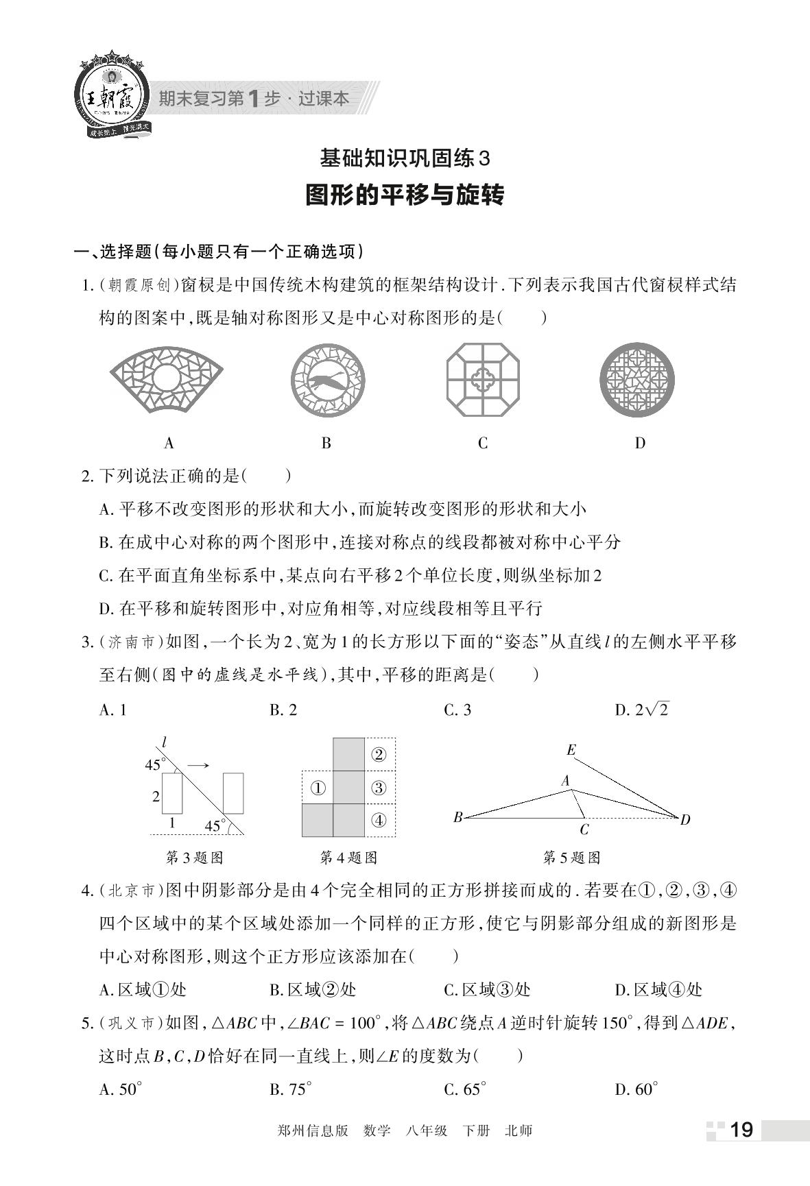 王朝霞期末过课本——基础知识巩固练3 图形的平移与旋转八年级下册数学(北师版)_R220322103249207