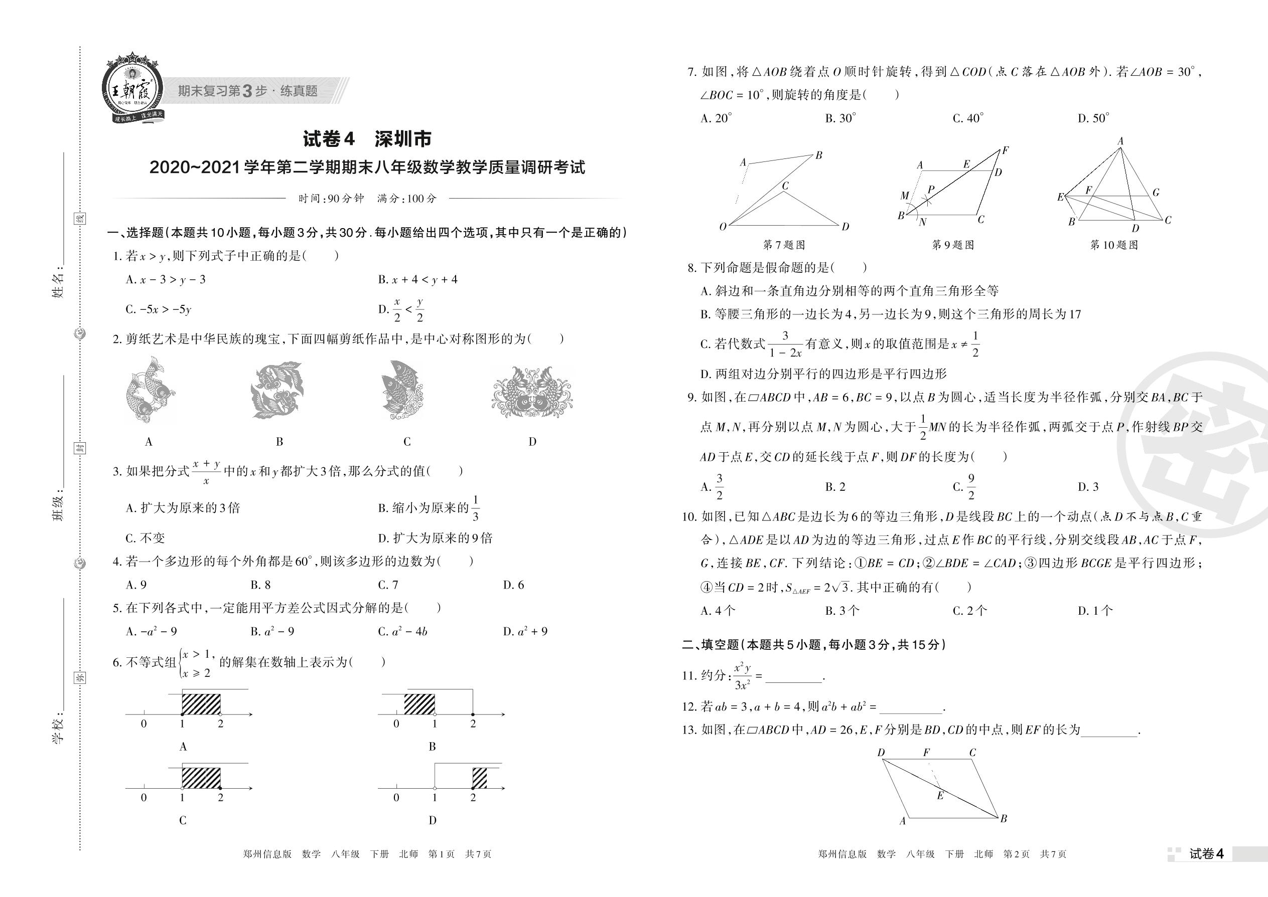 深圳市2020~2021学年第二学期期末八年级数学教学质量调研考试(北师版)【4】