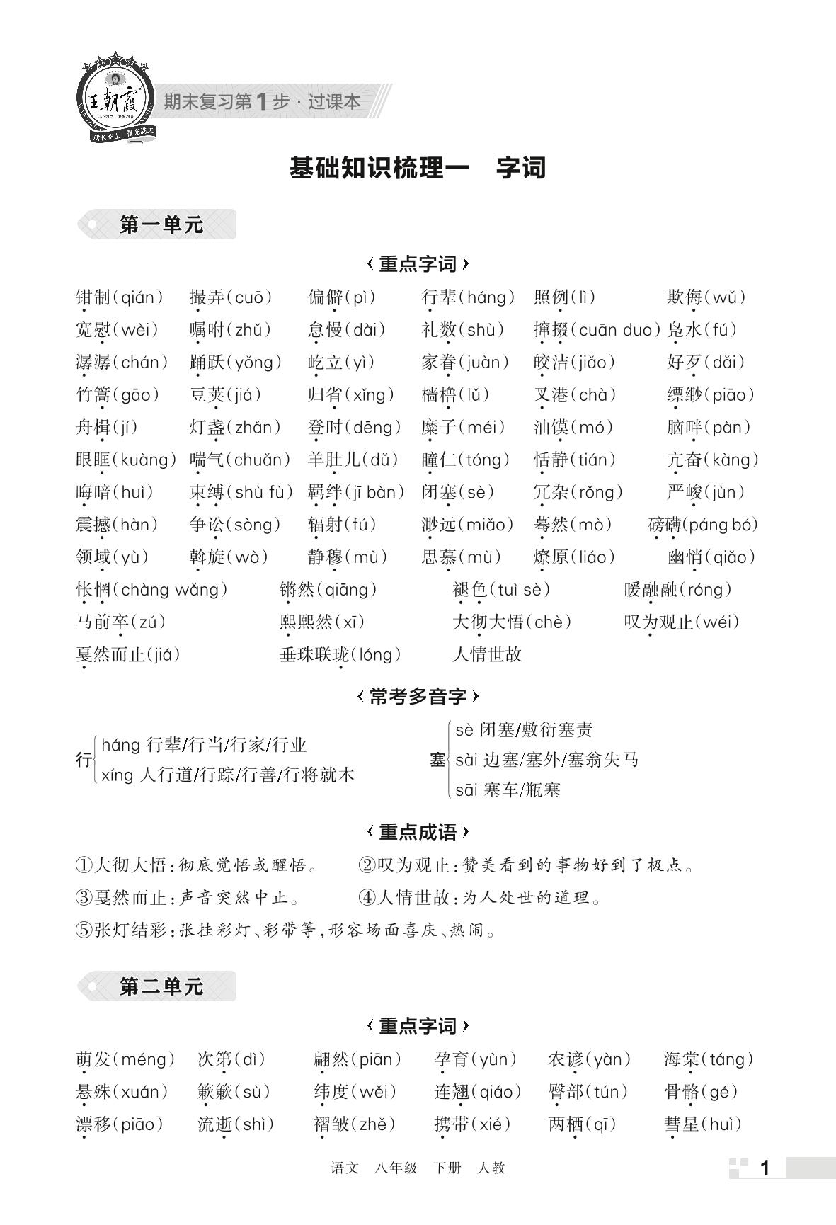 王朝霞期末过课本——基础知识梳理八年级下册语文(人教版)