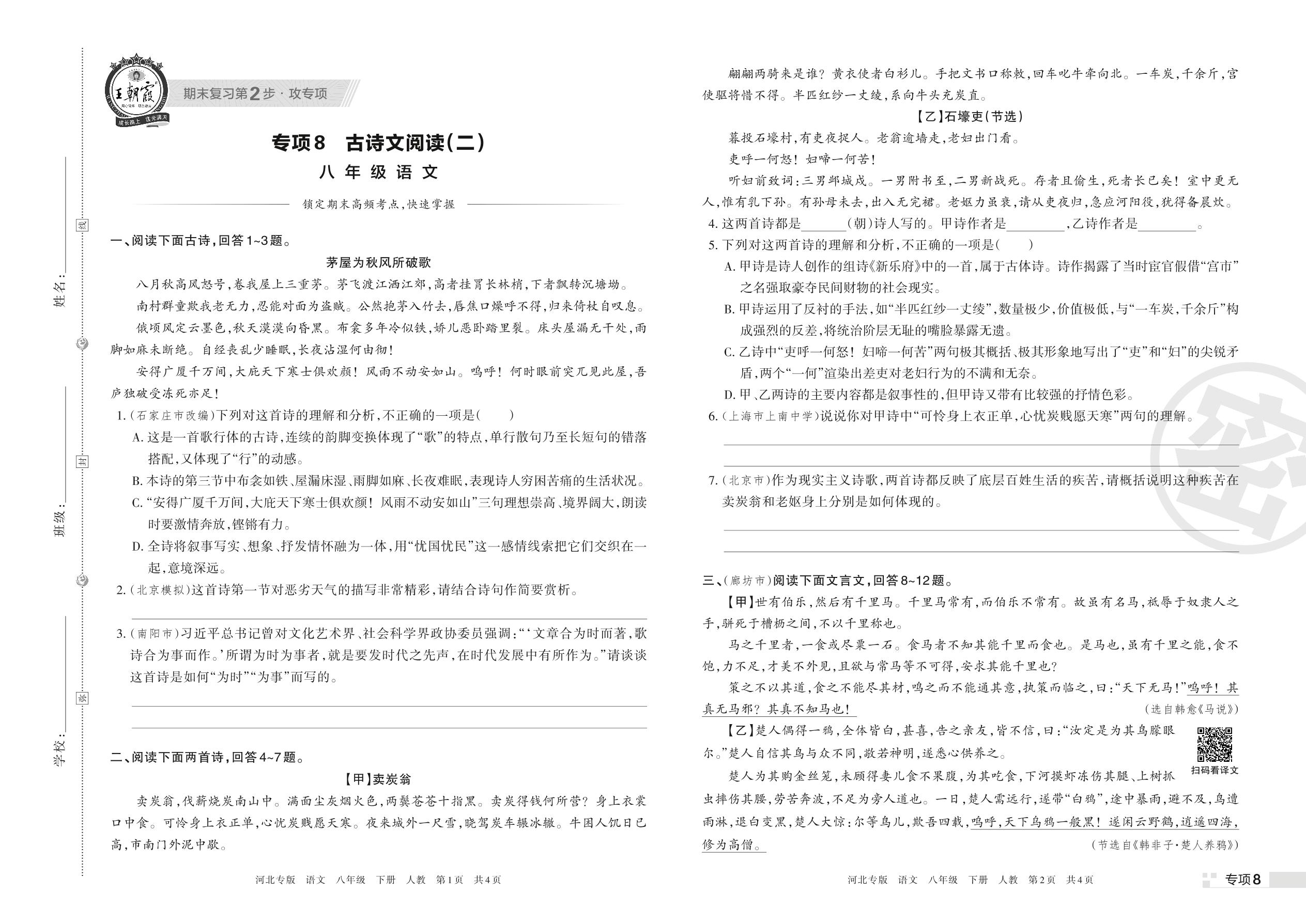 王朝霞期末专项卷——古诗文阅读(二)八年级下册语文(人教版)【8】