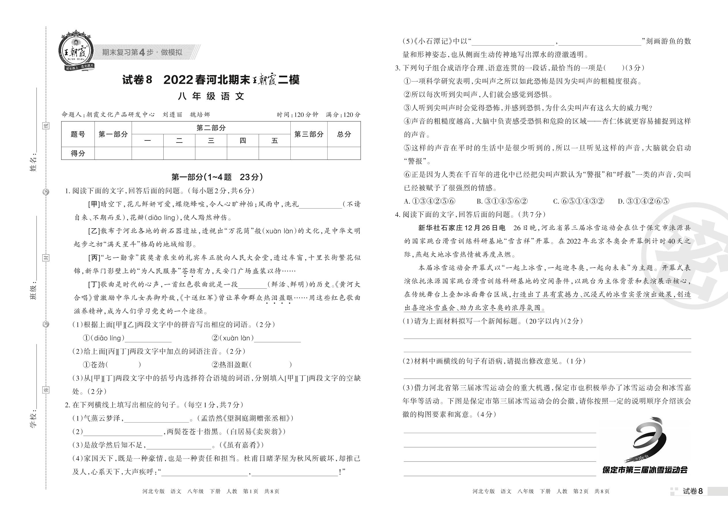 王朝霞期末模拟卷八年级下册语文(人教版)_R220322103517746【8】