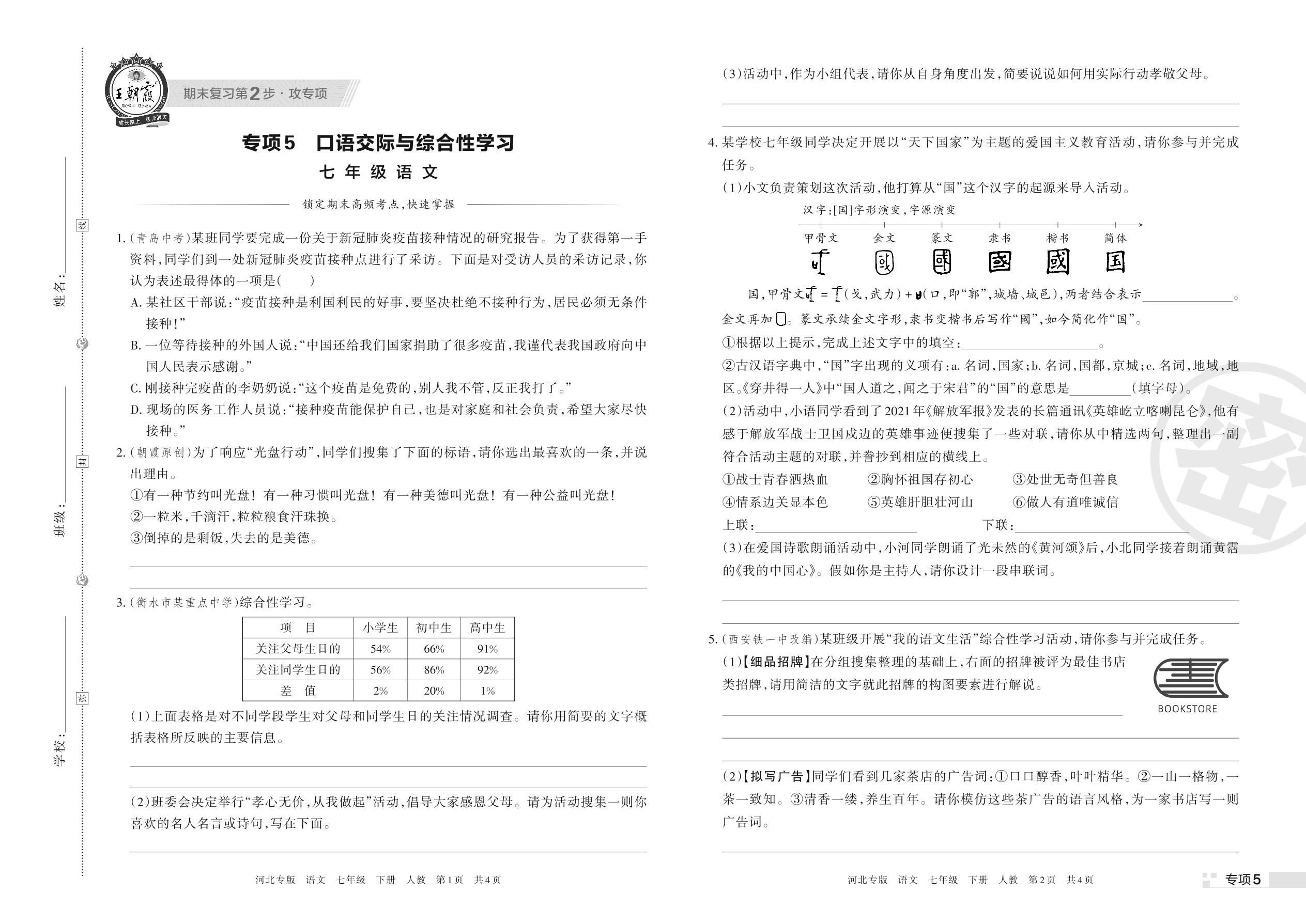 王朝霞期末专项卷——口语交际与综合性学习七年级下册语文(人教版)【5】