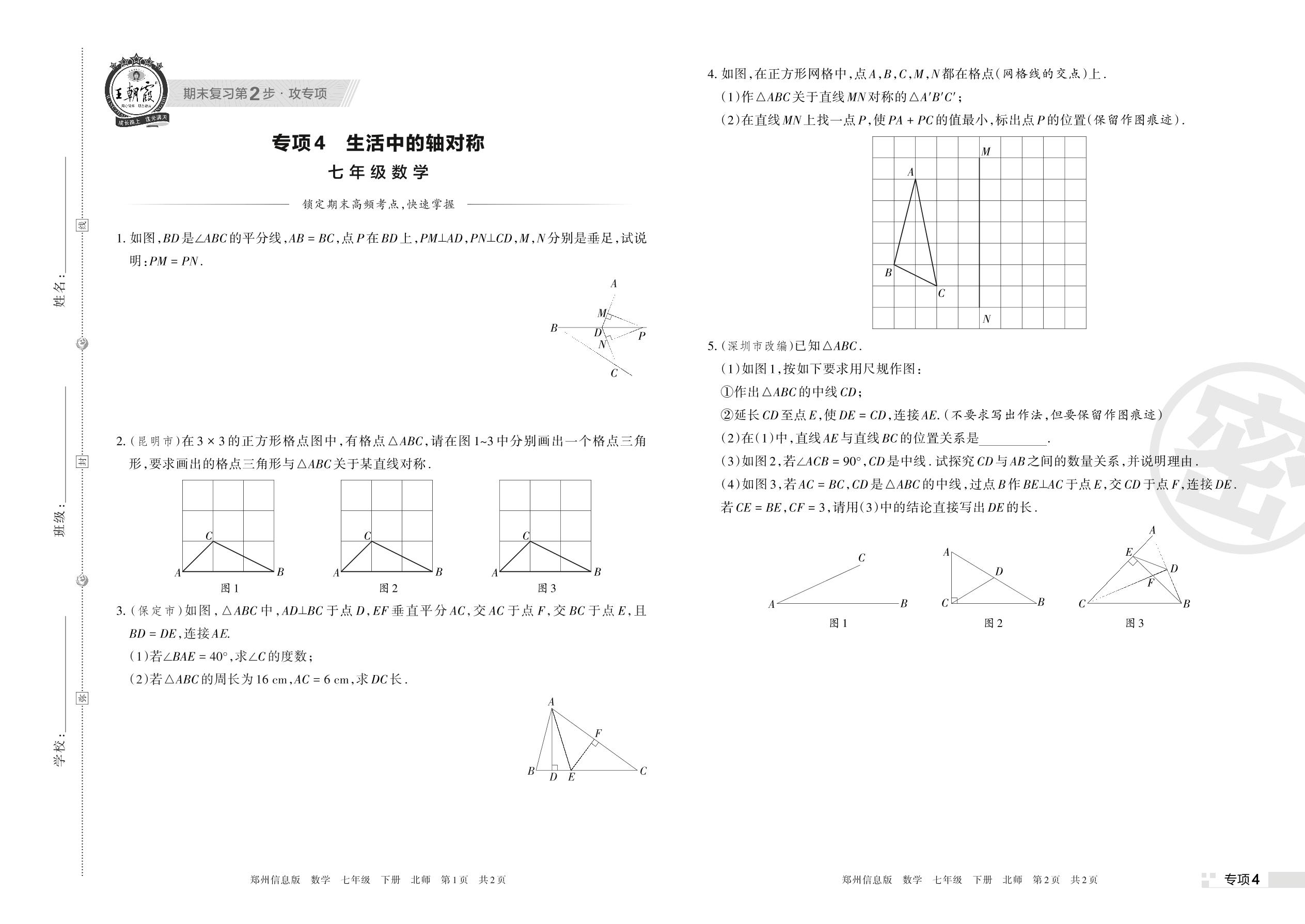 王朝霞期末专项卷——生活中的轴对称七年级下册数学(北师版)_R220322110346472【4】