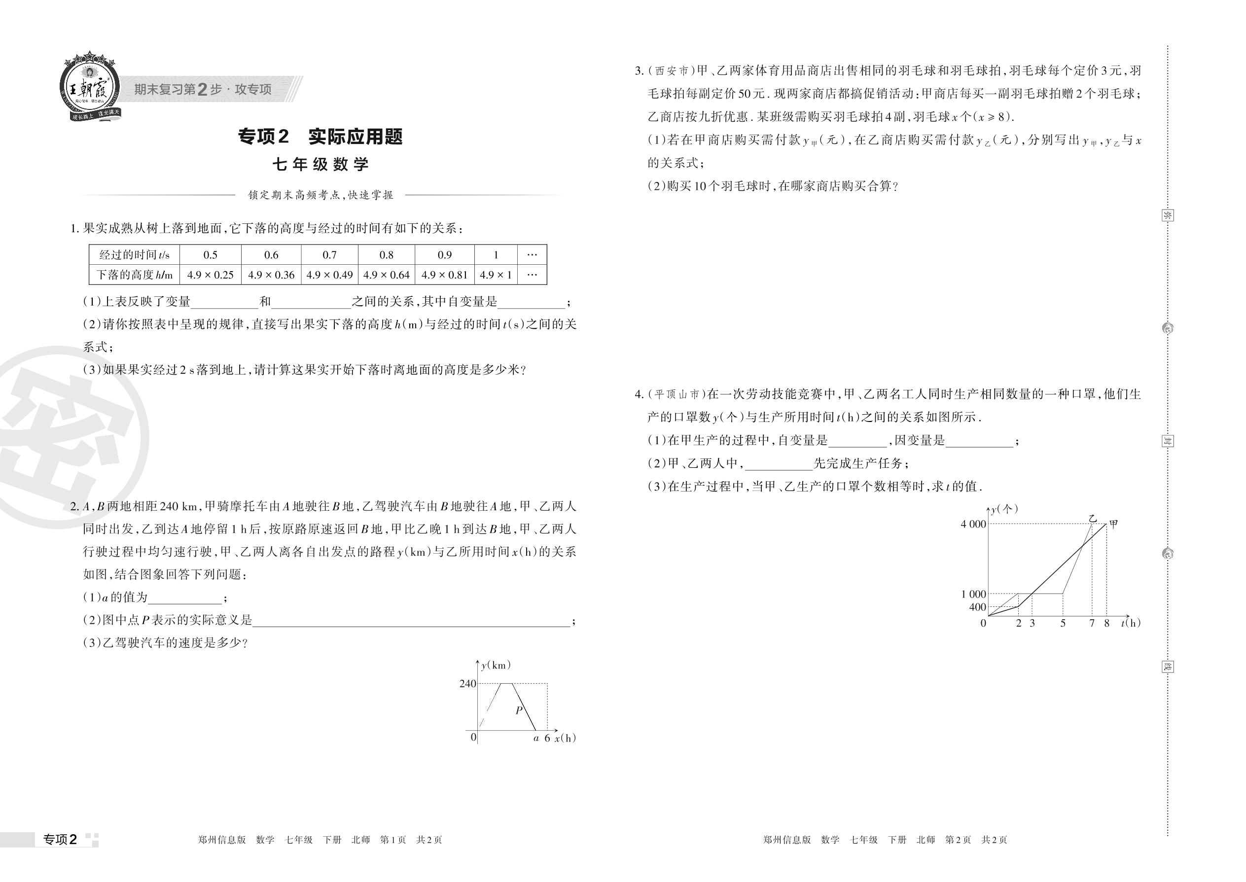 王朝霞期末专项卷——实际应用题七年级下册数学(北师版)_R220322110347068【2】