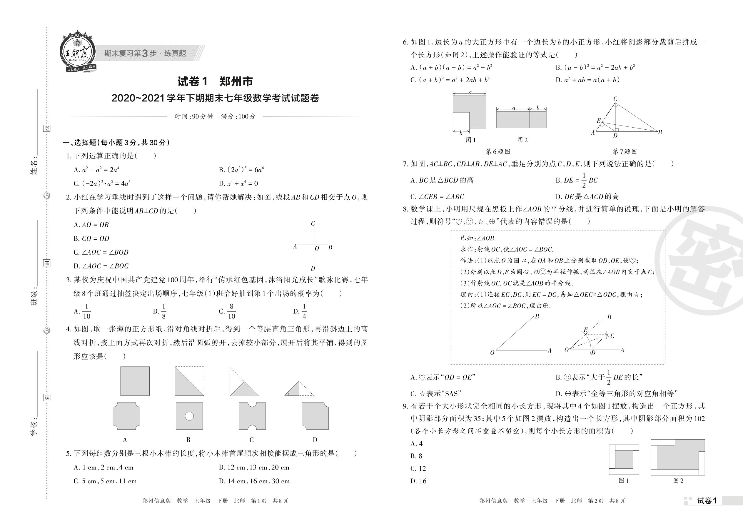 郑州市2020~2021学年下期期末七年级数学考试试题卷(北师版)【1】