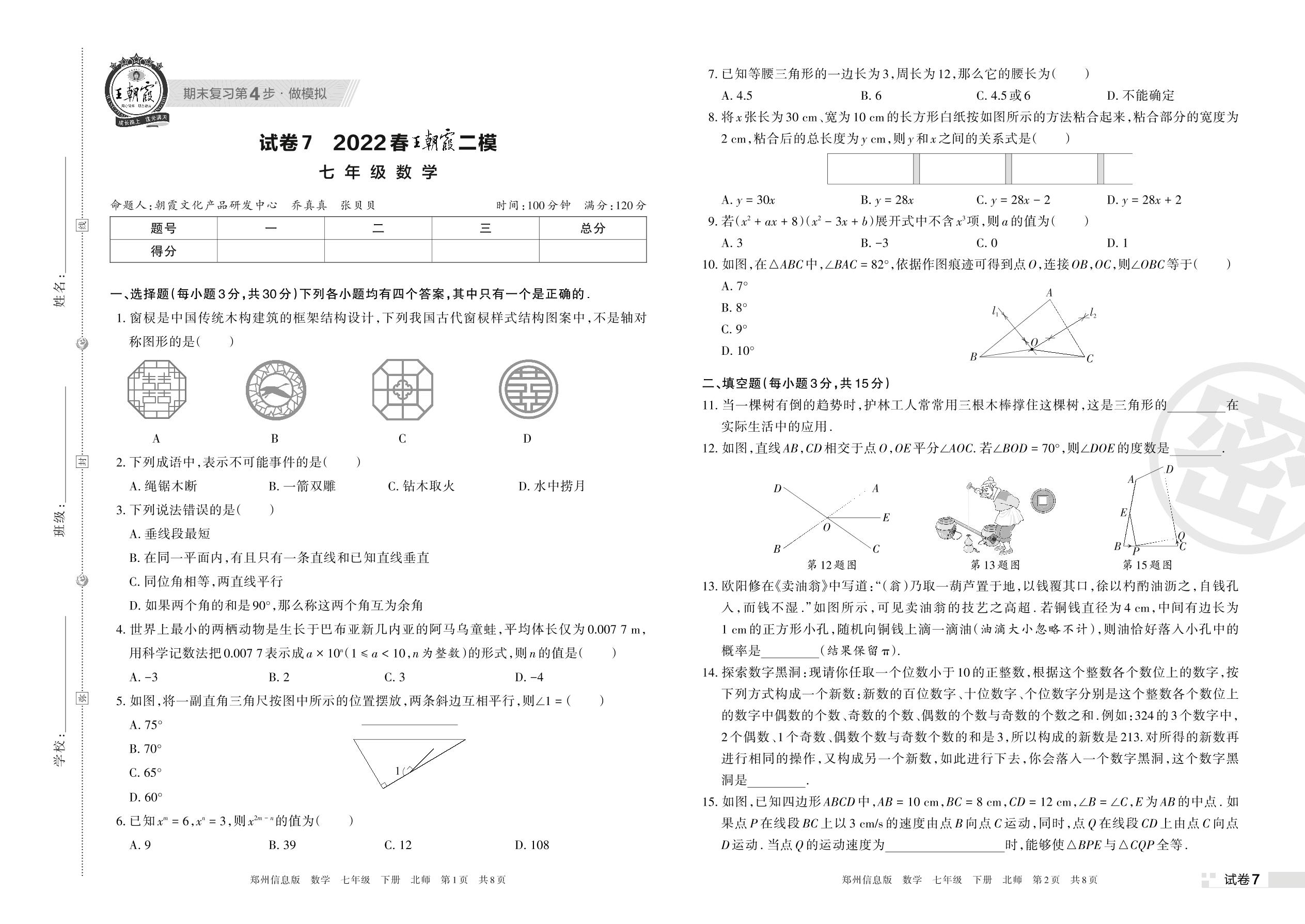 王朝霞期末模拟卷七年级下册数学(北师版)_R220322110348181【7】