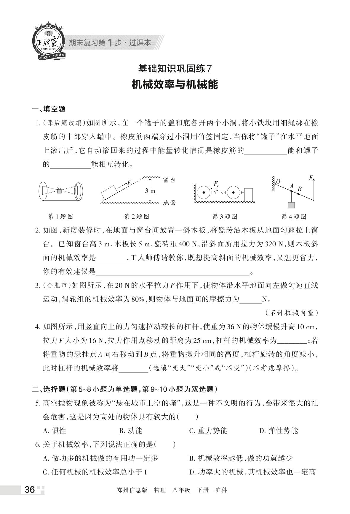 王朝霞期末过课本——基础知识巩固练7 机械效率与机械能八年级下册物理(沪科版)_R220322113540760