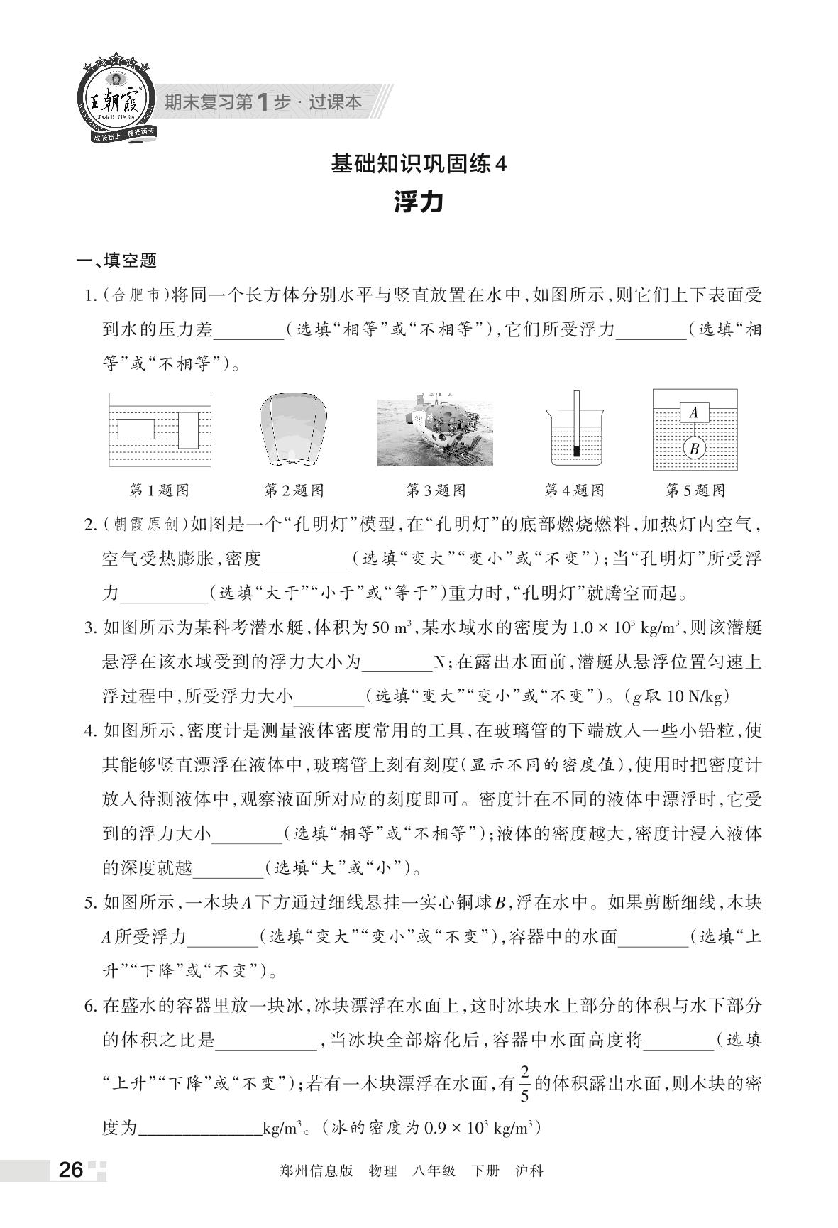王朝霞期末过课本——基础知识巩固练4 浮力八年级下册物理(沪科版)_R220322113541709