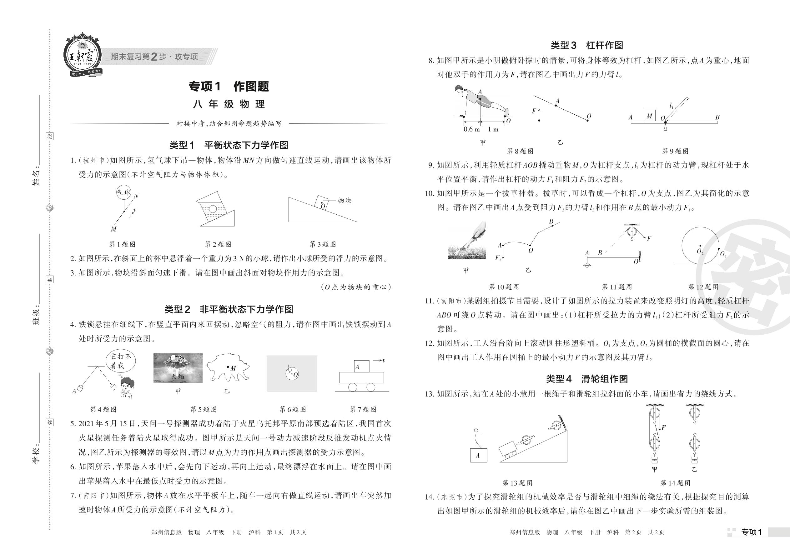 王朝霞期末专项卷——作图题八年级下册物理(沪科版)_R220322113541525【1】