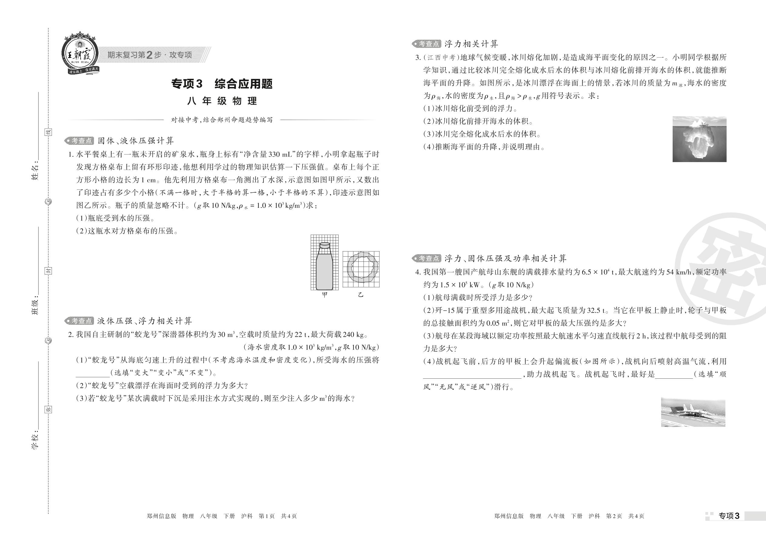 王朝霞期末专项卷——综合应用题八年级下册物理(沪科版)【3】
