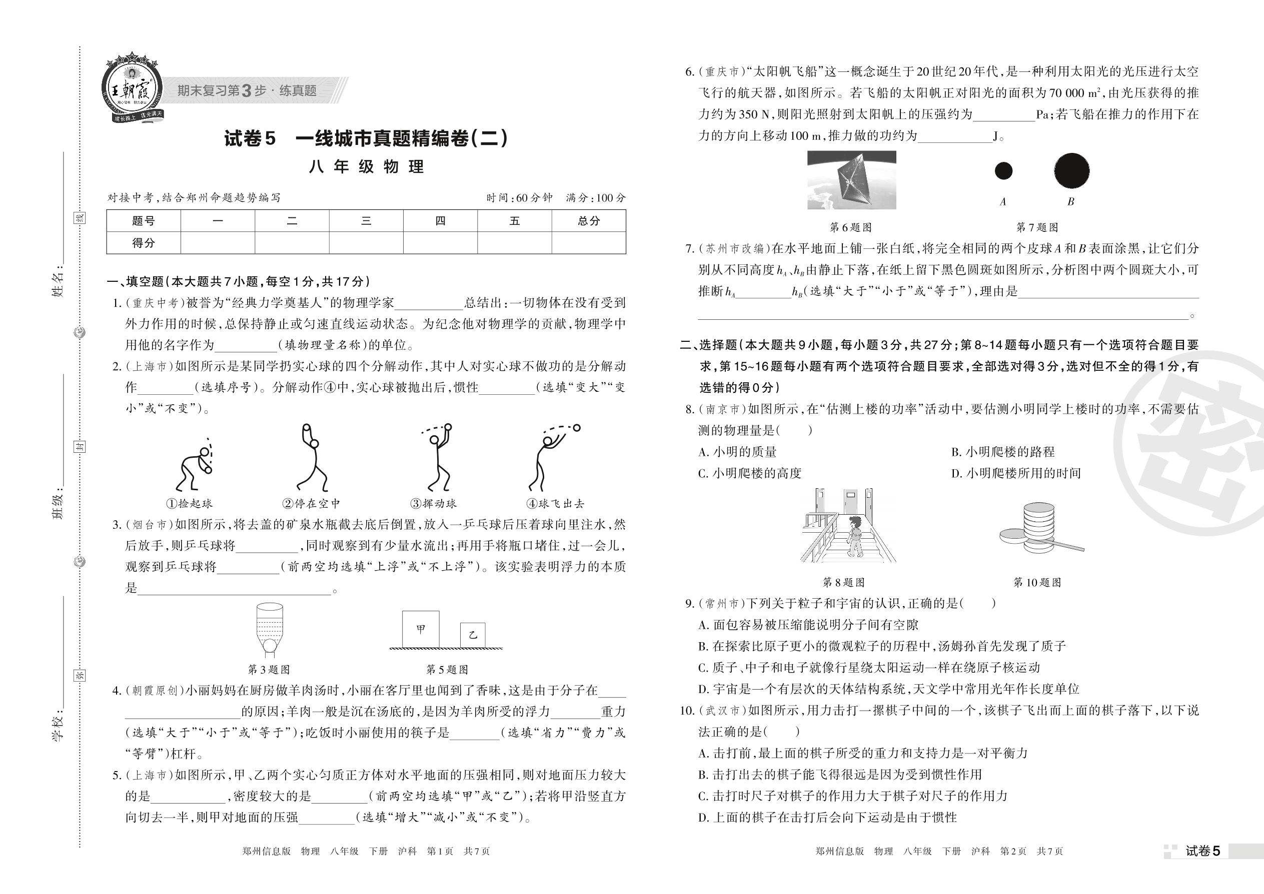 一线城市真题精编卷(二)八年级下册物理(沪科版)【5】