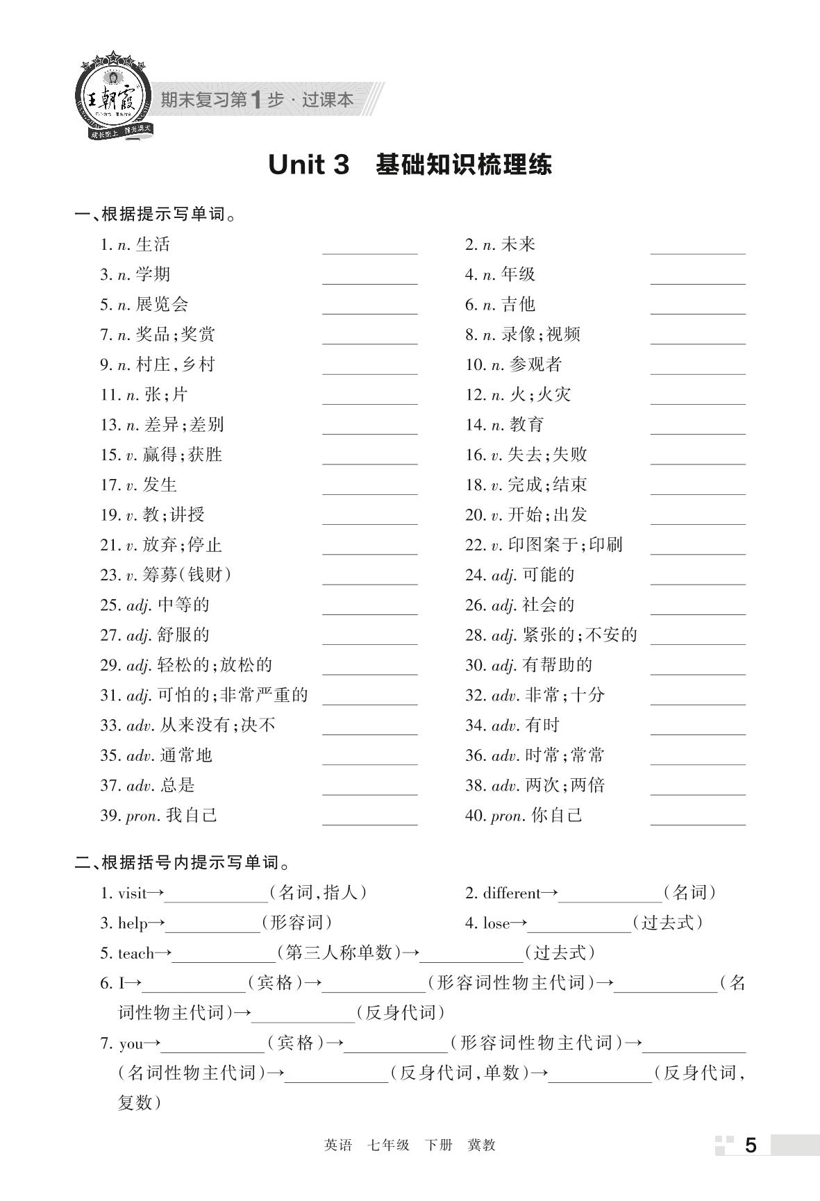 王朝霞期末过课本——Unit 3 基础知识梳理练七年级下册英语(冀教版)