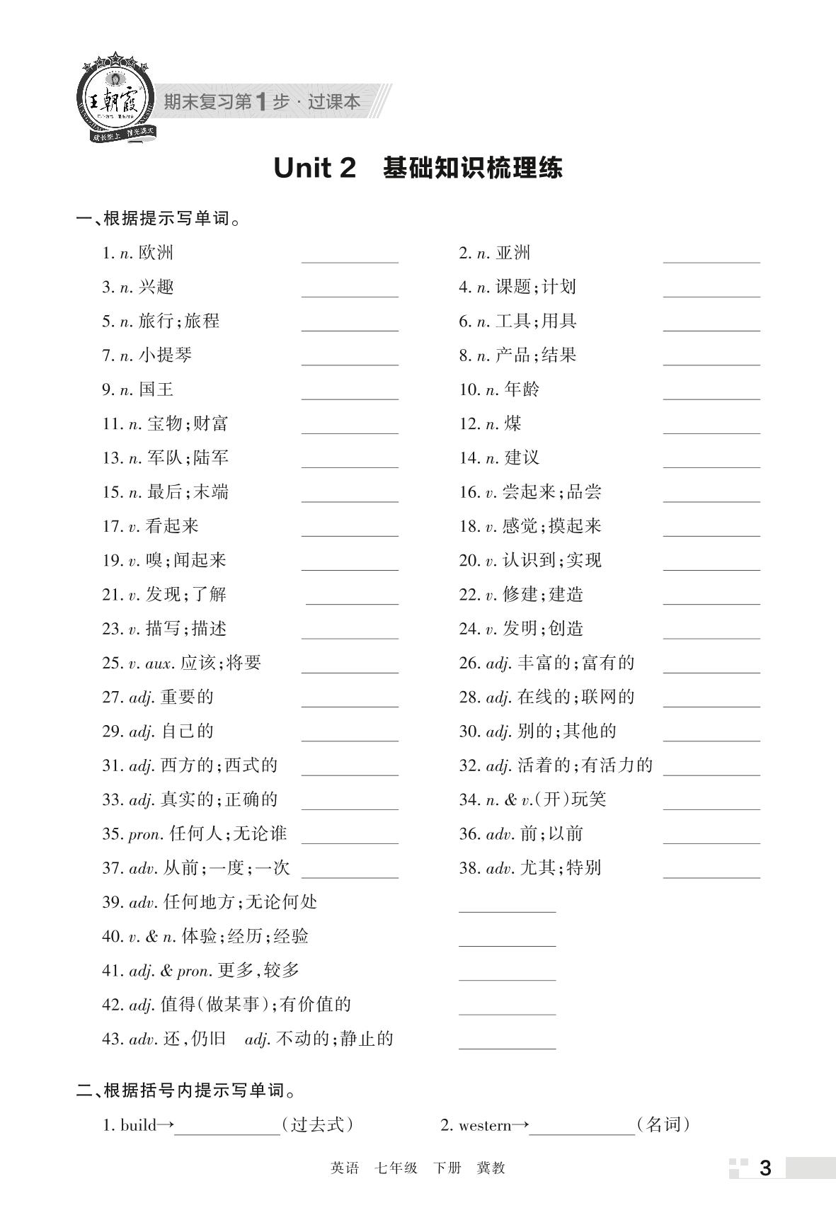 王朝霞期末过课本——Unit 2 基础知识梳理练七年级下册英语(冀教版)