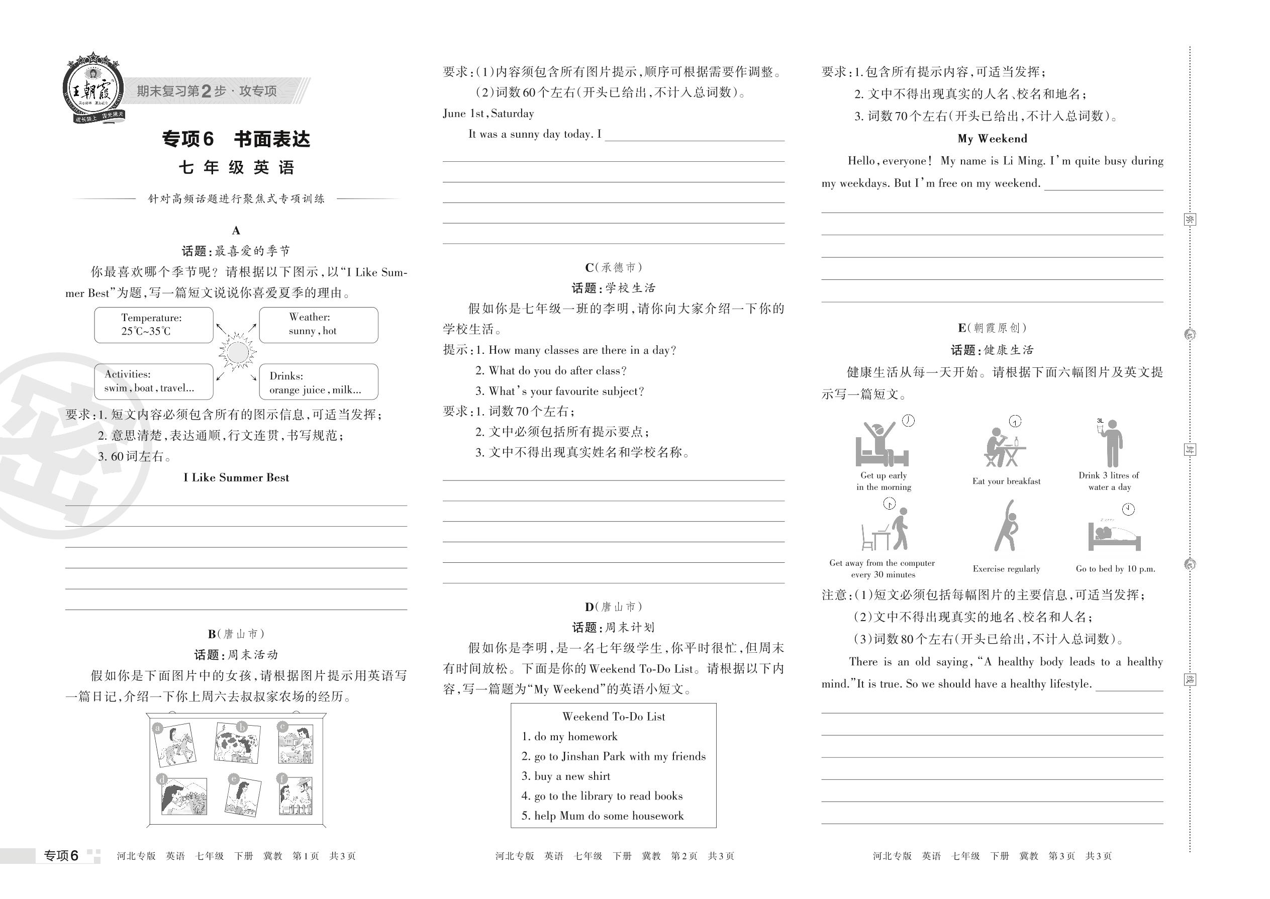 王朝霞期末专项卷——书面表达七年级下册英语(冀教版)【6】