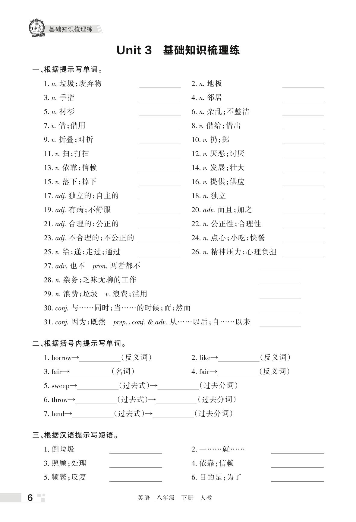 王朝霞期末过课本——Unit 3 基础知识梳理练八年级下册英语(人教版)_R220322134653734