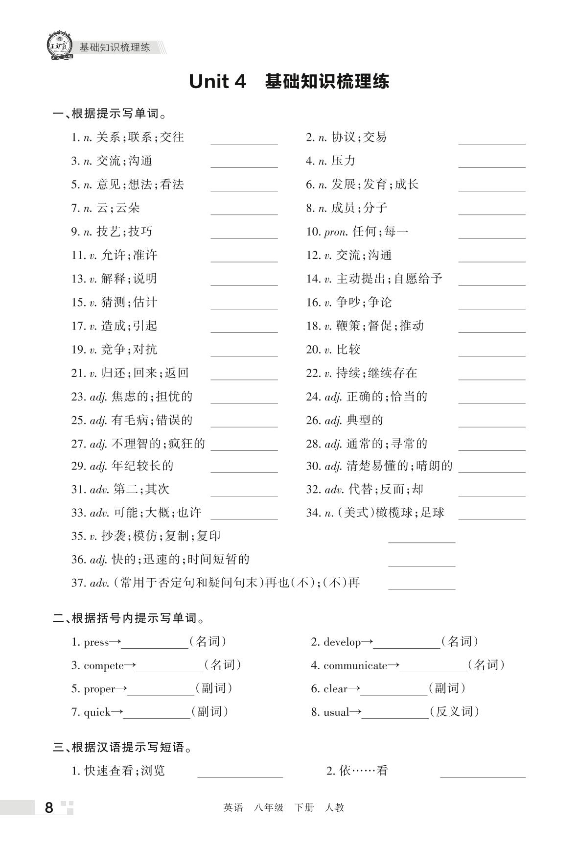 王朝霞期末过课本——Unit 4 基础知识梳理练八年级下册英语(人教版)_R220322134654002