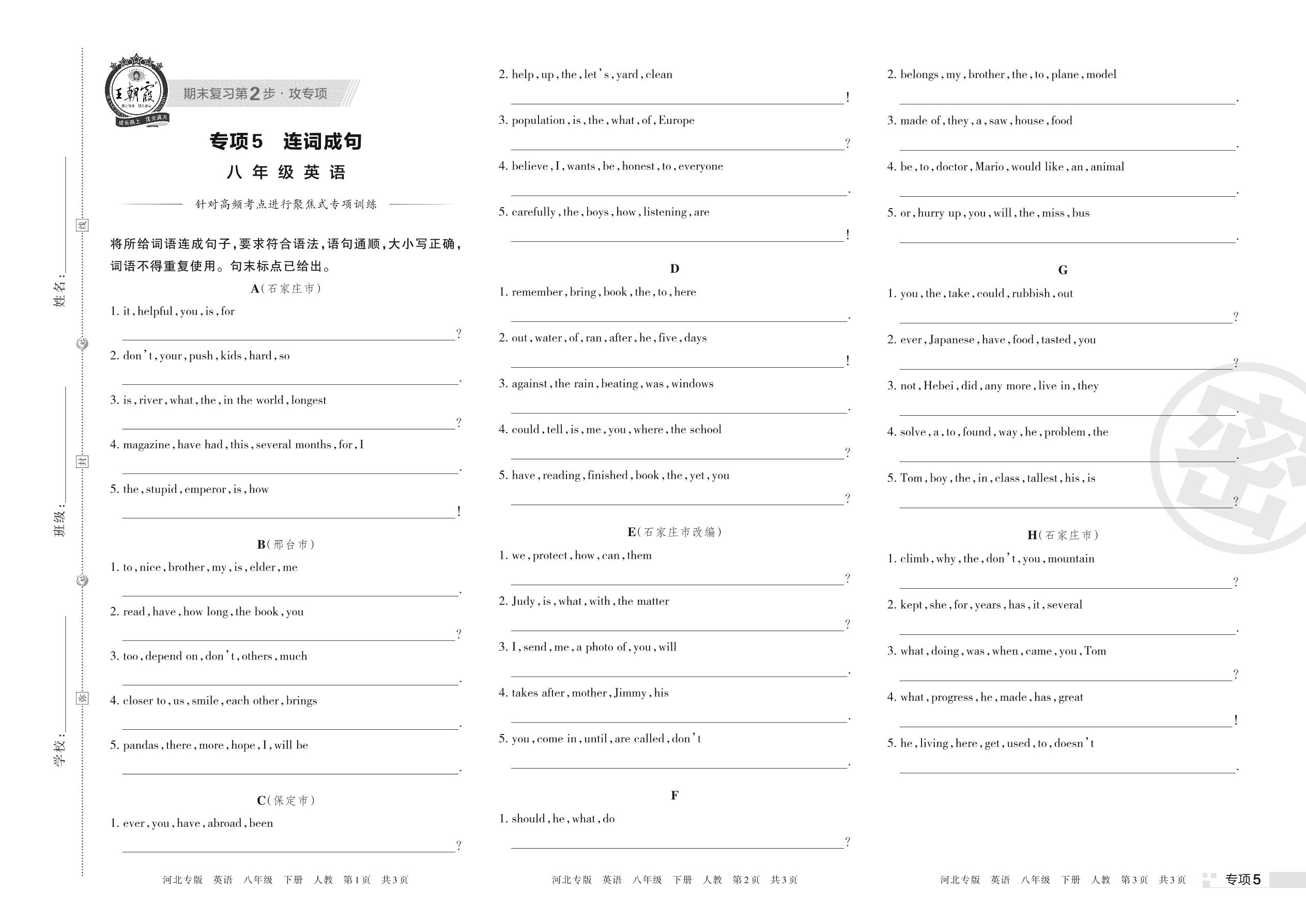王朝霞期末专项卷——连词成句八年级下册英语(人教版)【5】