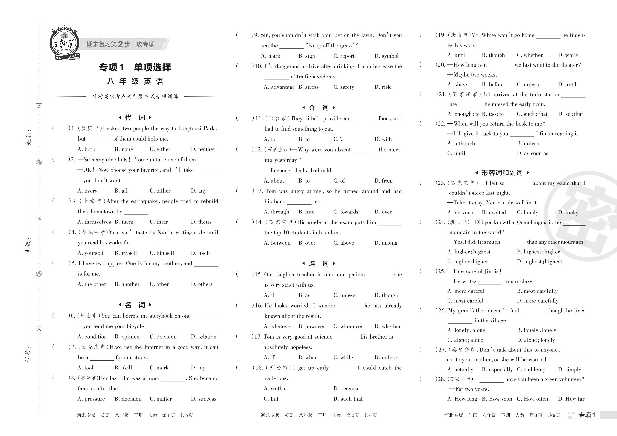 王朝霞期末专项卷——单项选择八年级下册英语(人教版)_R220322134654986【1】