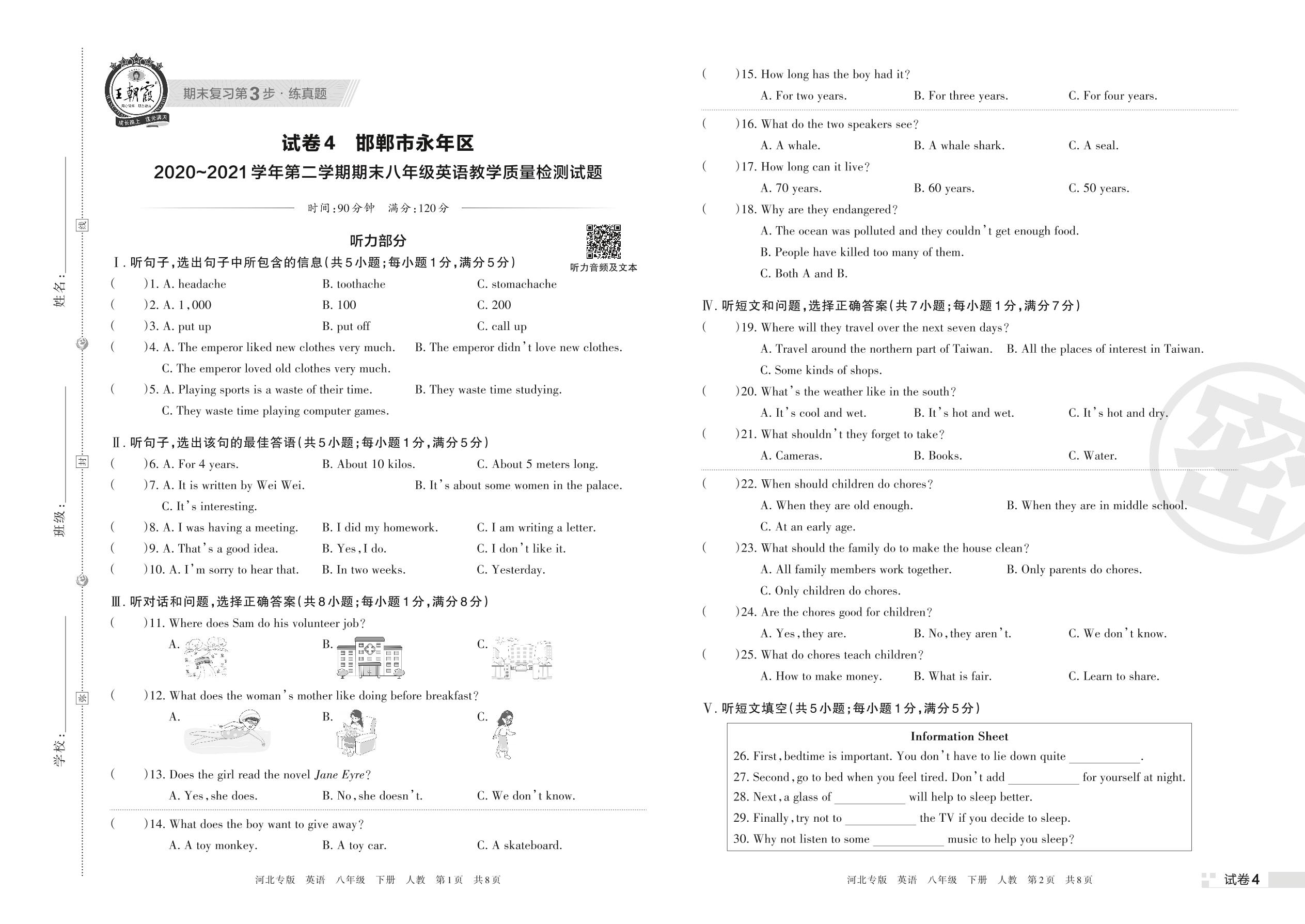 邯郸市永年区2020~2021学年第二学期期末八年级英语教学质量检测试题(人教版)【4】