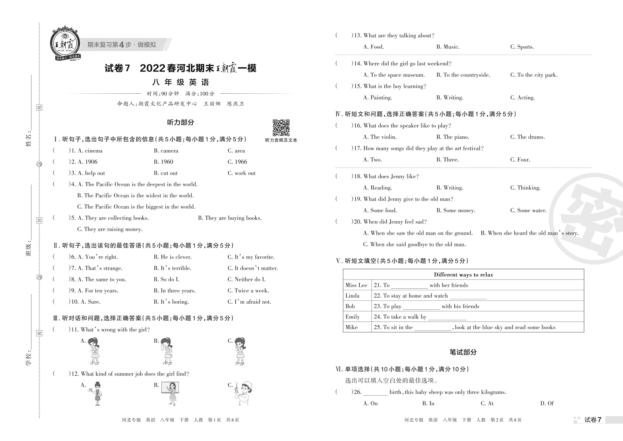 王朝霞期末模拟卷八年级下册英语(人教版)_R220322134655453【7】