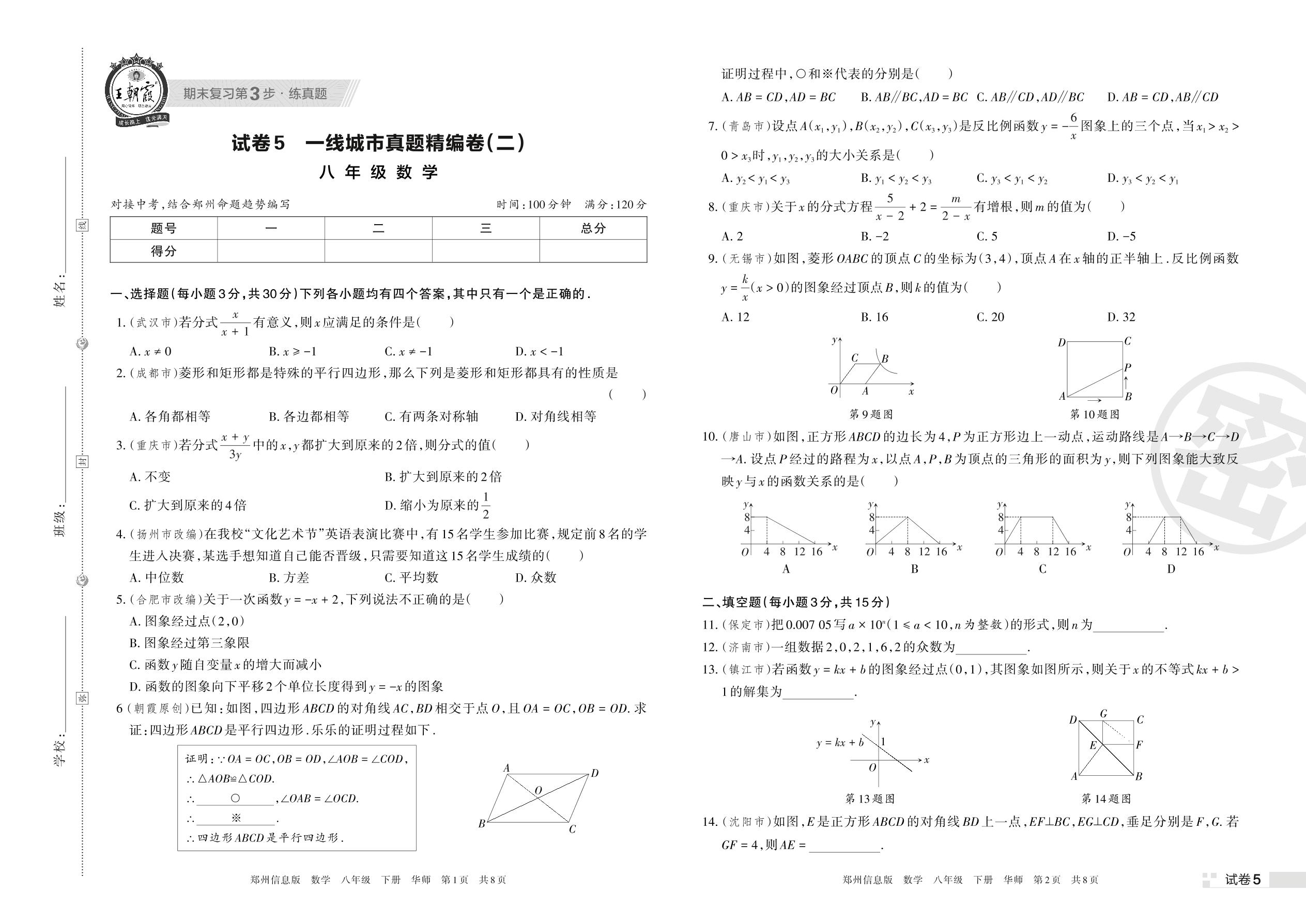 一线城市真题精编卷(二)八年级下册数学(华师版)【5】
