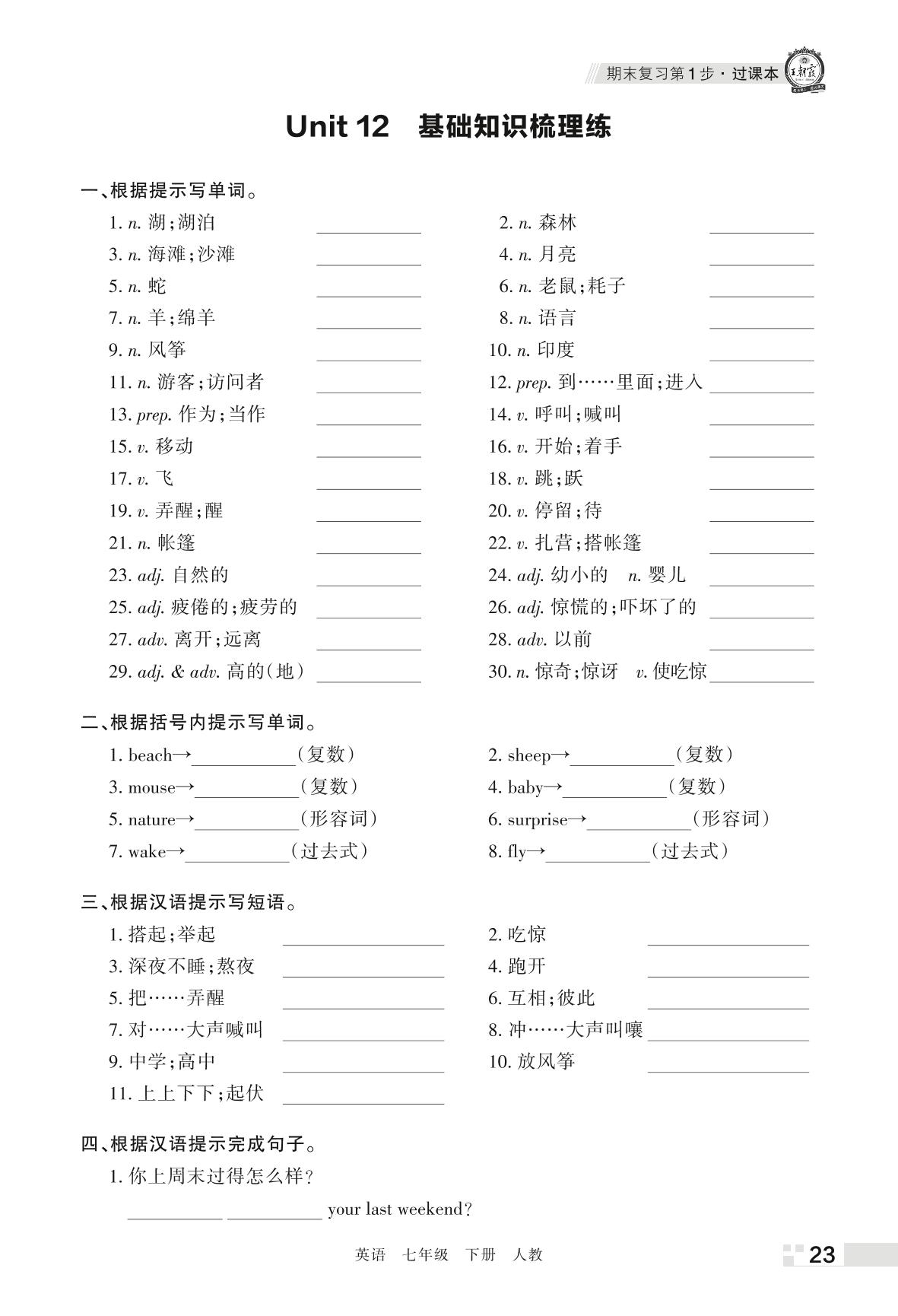 王朝霞期末过课本——Unit 12 基础知识梳理练七年级下册英语(人教版)_R220322135719137