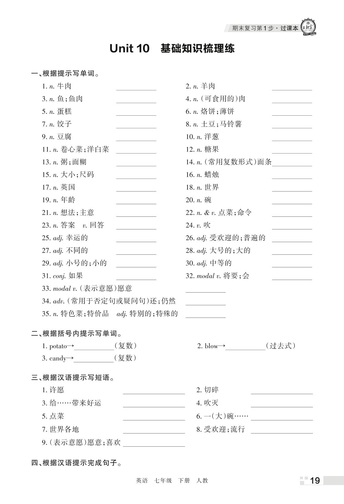 王朝霞期末过课本——Unit 10 基础知识梳理练七年级下册英语(人教版)_R220322135720301