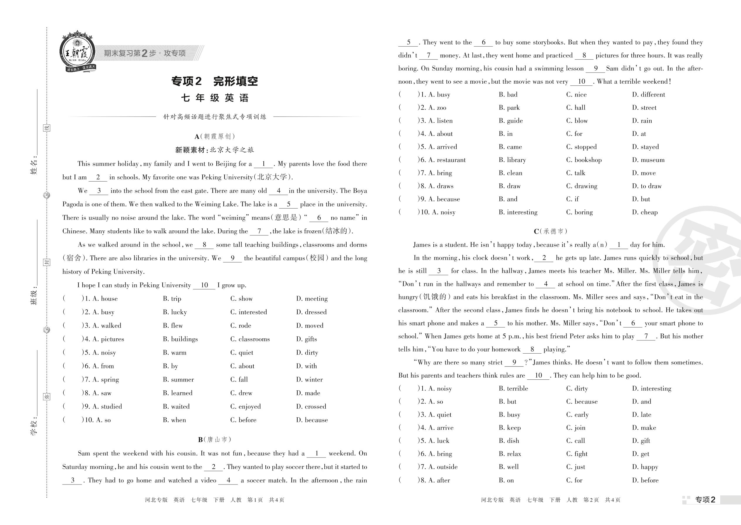 王朝霞期末专项卷——完形填空七年级下册英语(人教版)_R220322135720124【2】