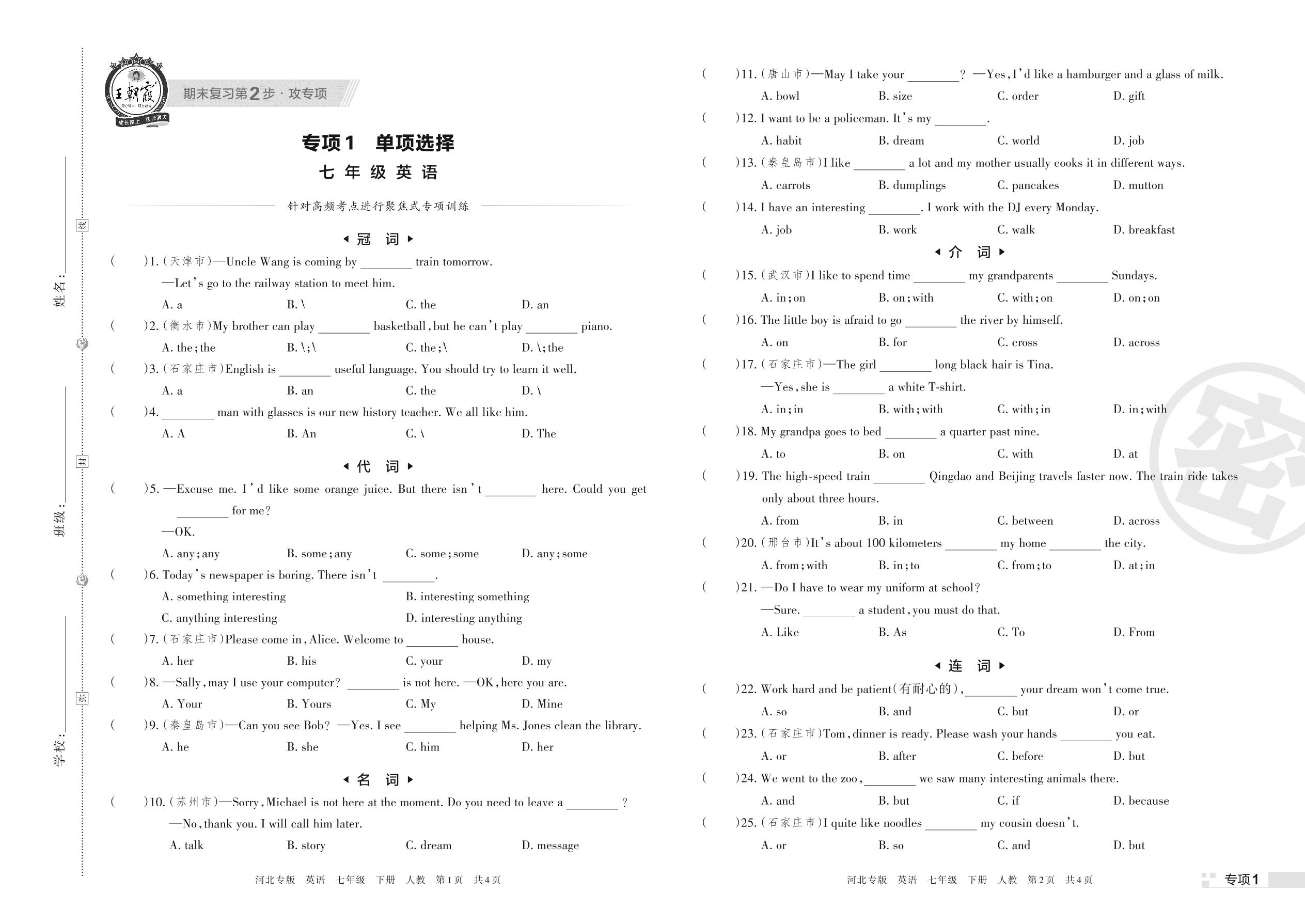 王朝霞期末专项卷——单项选择七年级下册英语(人教版)_R220322135720436【1】