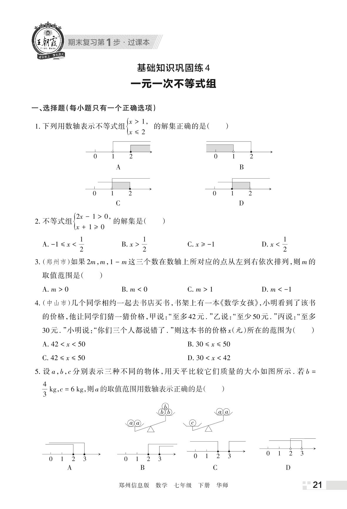 王朝霞期末过课本——基础知识巩固练4 一元一次不等式组七年级下册数学(华师版)