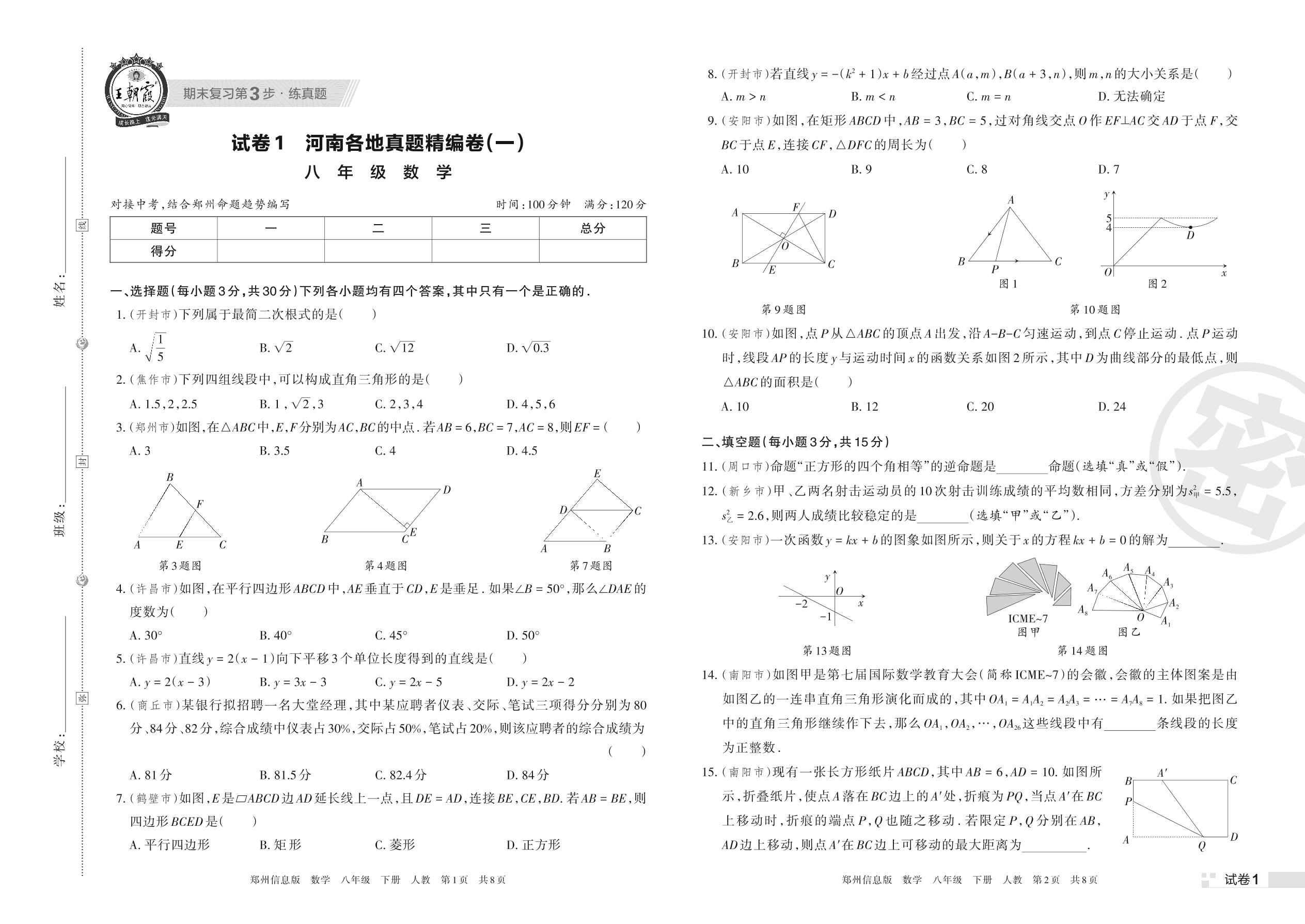河南各地真题精编卷(一)八年级下册数学(人教版)【1】