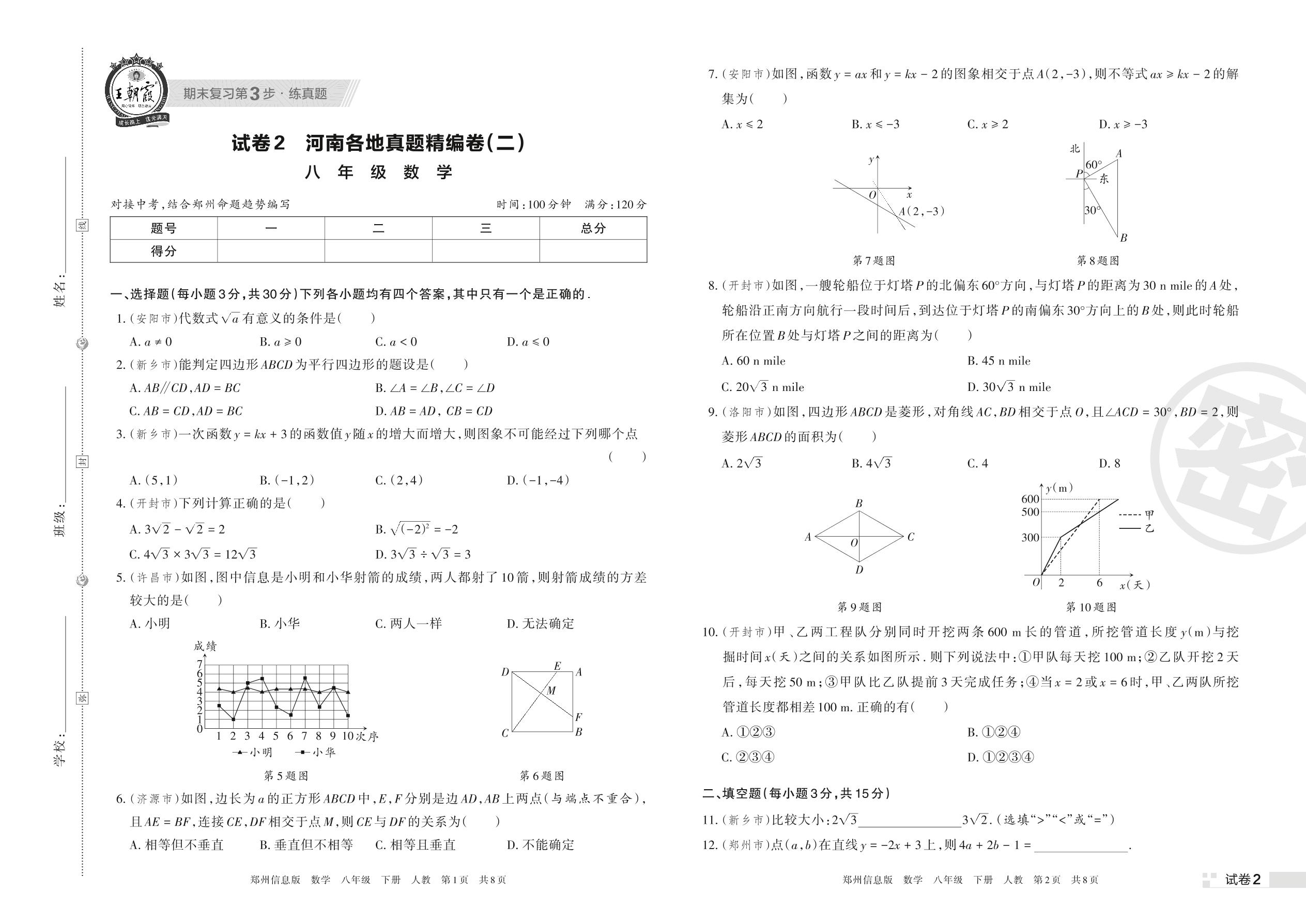 河南各地真题精编卷(二)八年级下册数学(人教版)【2】