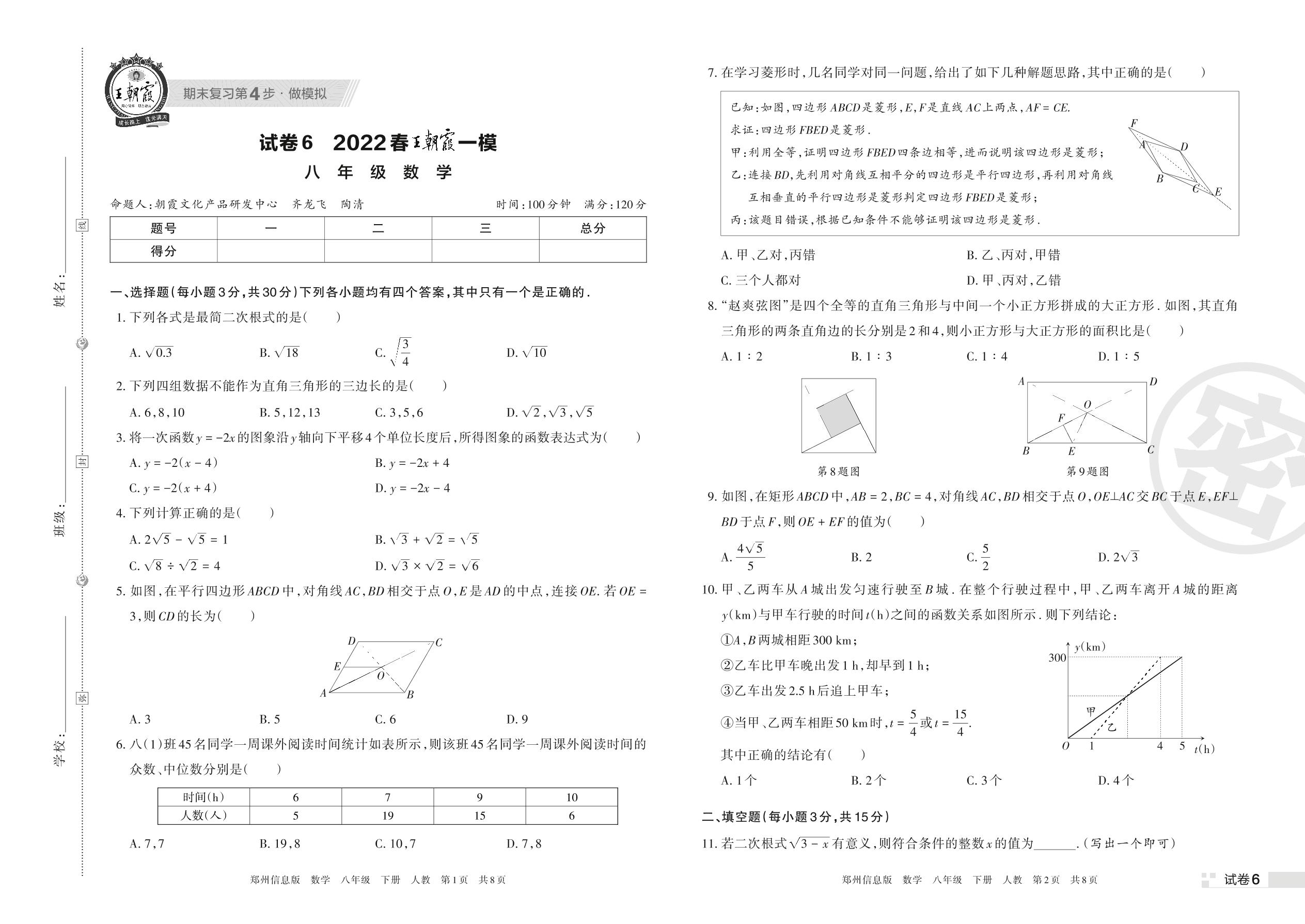王朝霞期末模拟卷八年级下册数学(人教版)_R220322143821372【6】