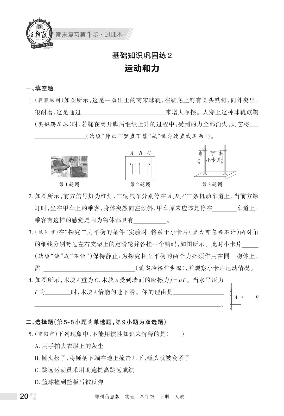 王朝霞期末过课本——基础知识巩固练2 运动和力八年级下册物理(人教版)_R220322150336001