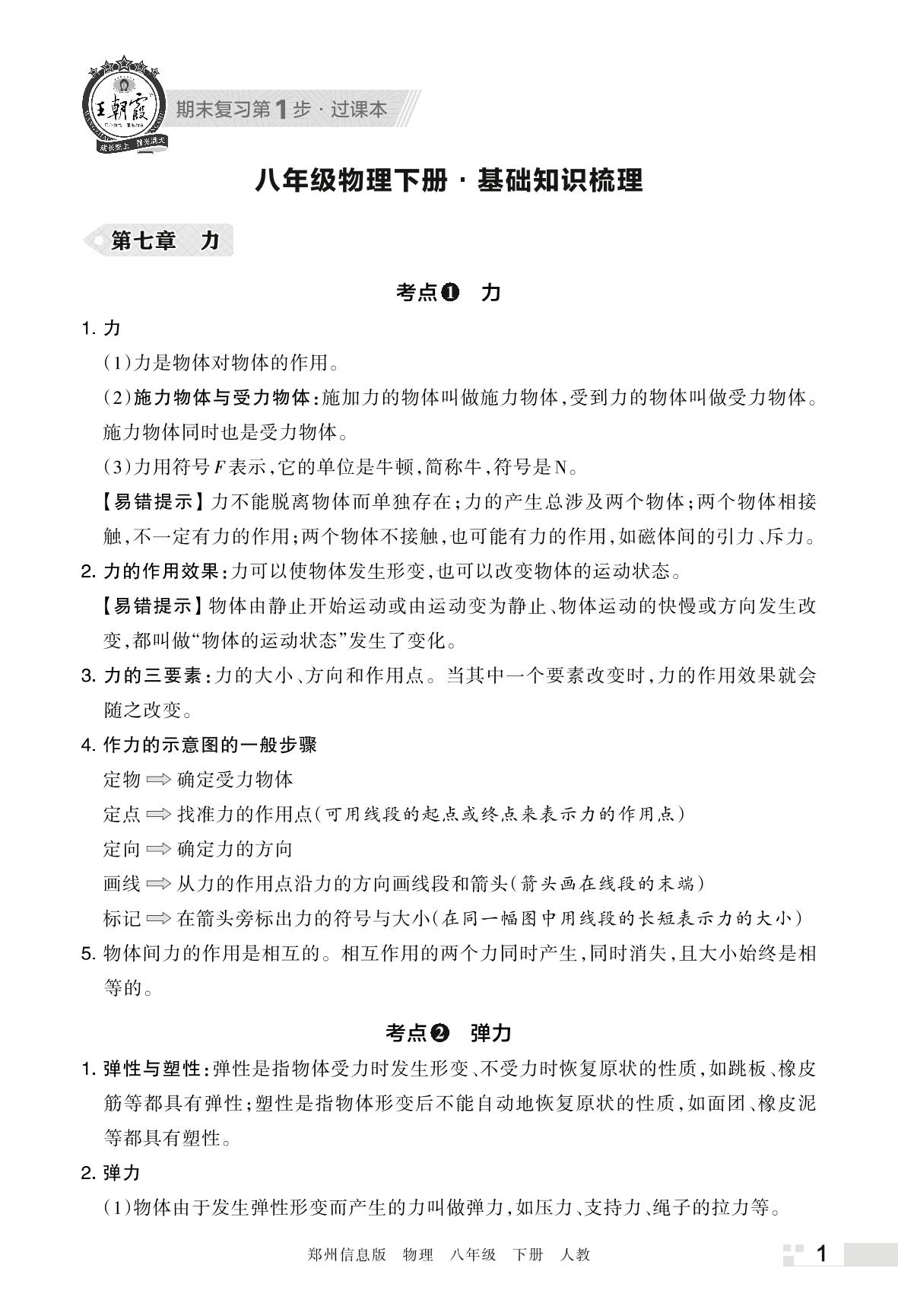 王朝霞期末过课本——基础知识梳理八年级下册物理(人教版)_R220322150336606