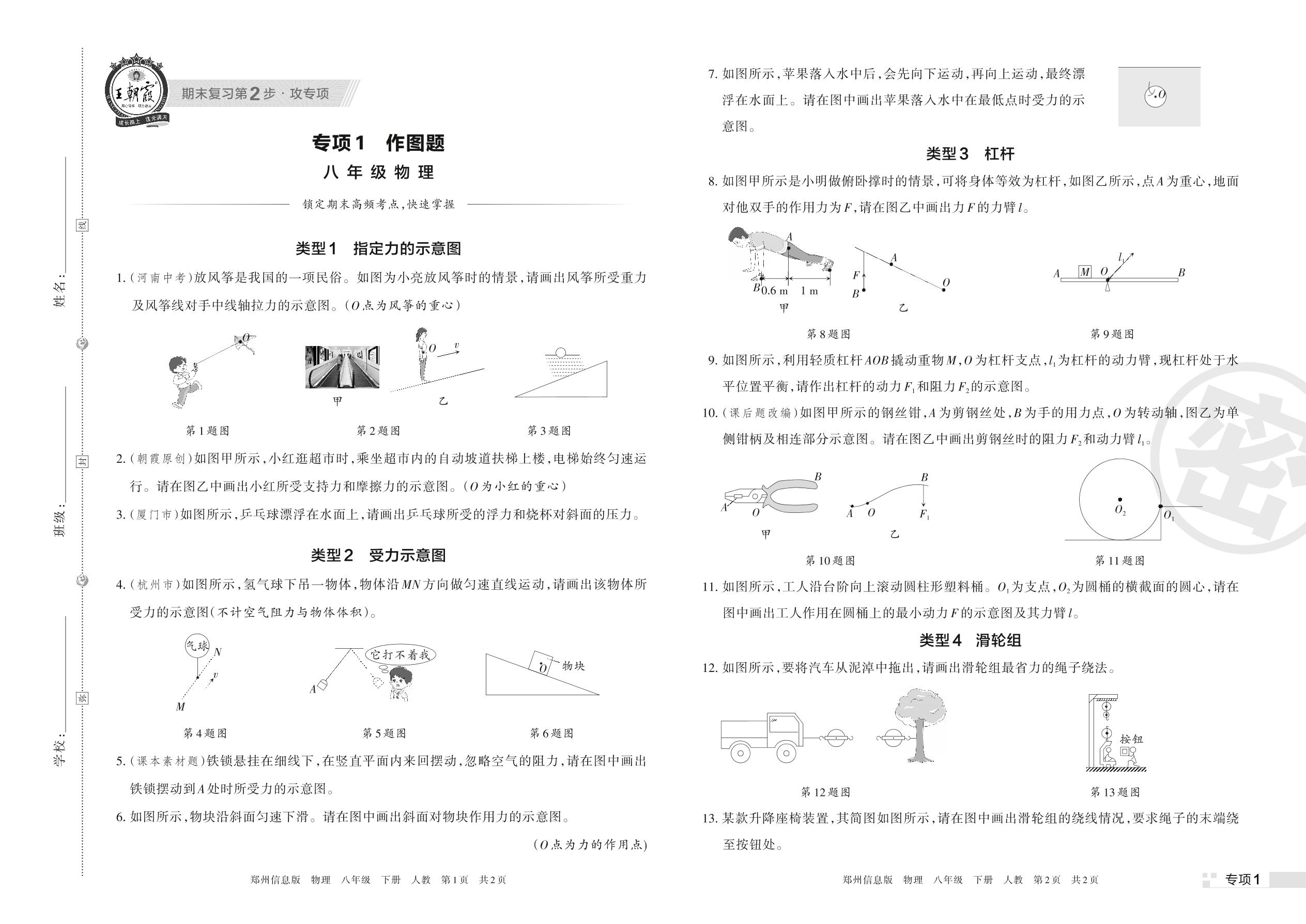 王朝霞期末专项卷——作图题八年级下册物理(人教版)_R220322150336389【1】