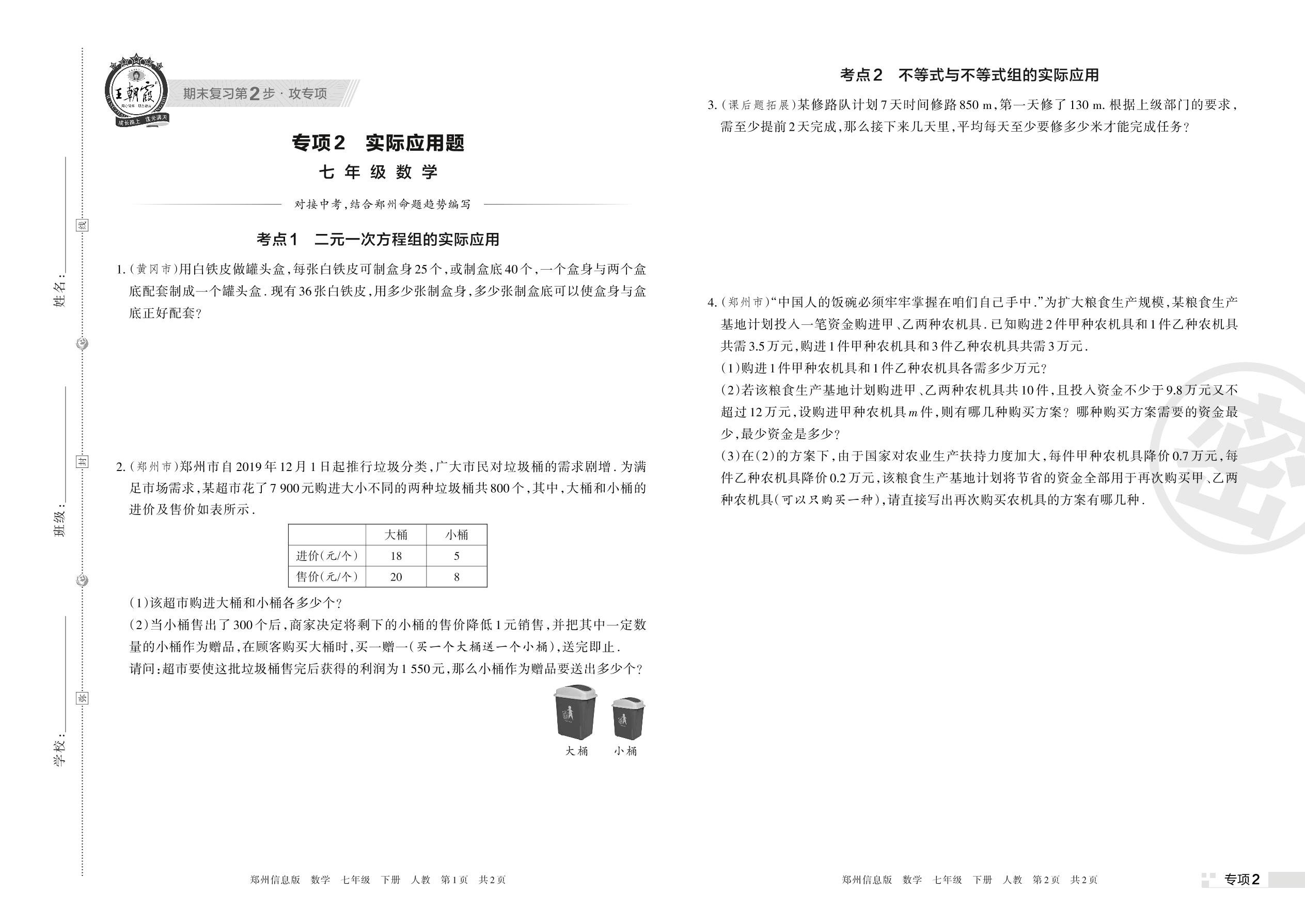 王朝霞期末专项卷——实际应用题七年级下册数学(人教版)_R220322151436827【2】