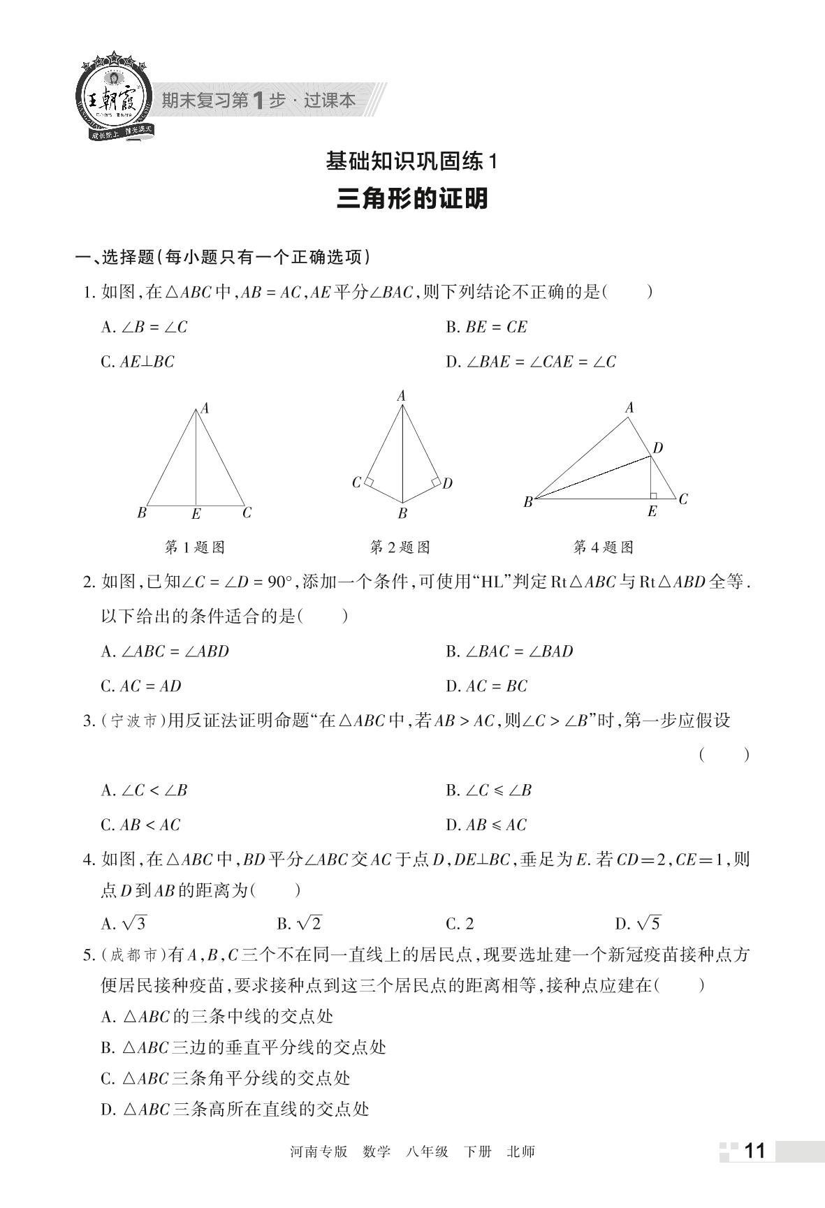 王朝霞期末过课本——基础知识巩固练1 三角形的证明八年级下册数学(北师版)_R220322165105808
