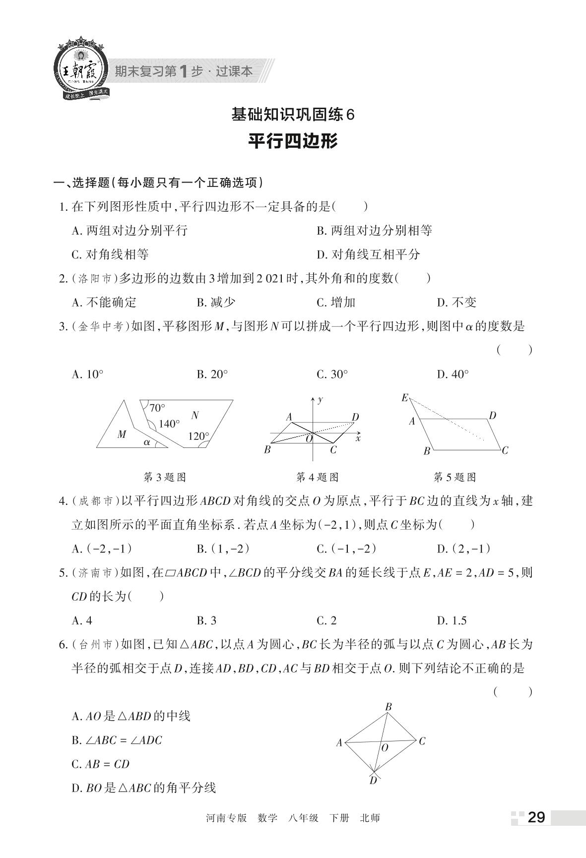 王朝霞期末过课本——基础知识巩固练6 平行四边形八年级下册数学(北师版)_R220322165105061